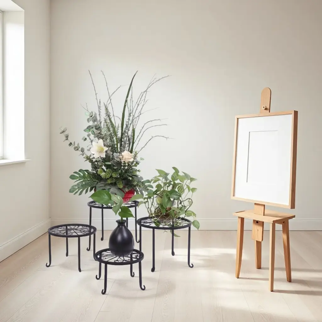 SEVOBAL versatile stand set provides elevated display solutions for both functional and decorative needs. The sturdy iron construction safely lifts heavy planters while adding architectural interest to any space. Perfect for creating tiered garden arrangements, buffet serving stations, or accent displays, the classic black finish blends effortlessly with any color scheme or design style.