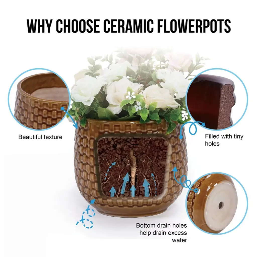 SEVOBAL elegant set of three ceramic planters combines modern aesthetics with practical gardening solutions. The glossy finish adds contemporary sophistication to patios, balconies, or interior spaces, while the durable frost-proof construction ensures lasting performance. Ideal for creating cohesive herb gardens, floral displays, or decorative plant arrangements, these planters feature functional drainage in a sleek package.
