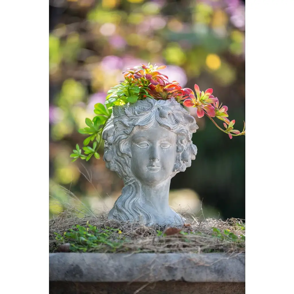 Sevobal Planters Artistic Goddess Head Wall Planter Small Cement Indoor And Outdoor Planter Pot For Flowers And Succulents, Gray, 7.9"*8.9"*11.6"