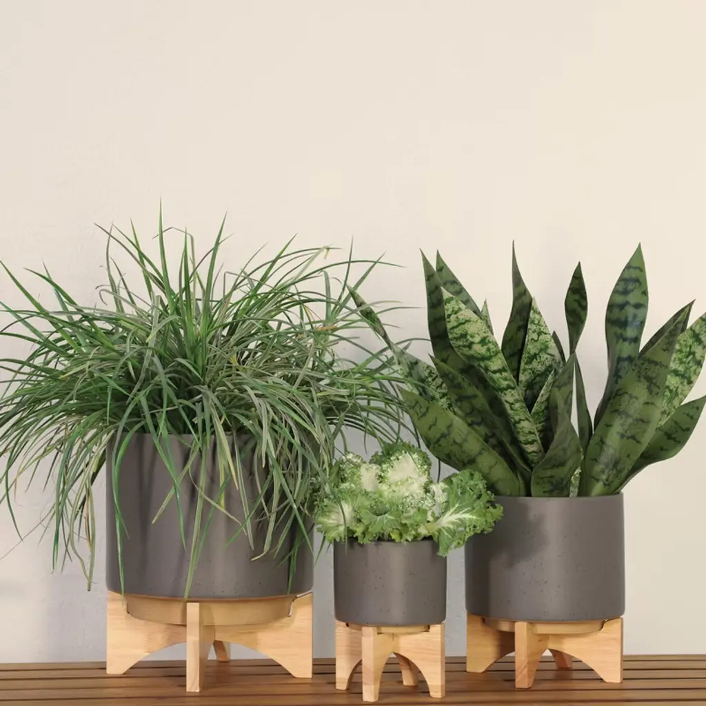 Sevobal Planters Small Plant Pot With Drainage Plug And Stand And Legs For Indoor Home Office Table Plants Flowers Herb, Gray, 8"*8"*9"