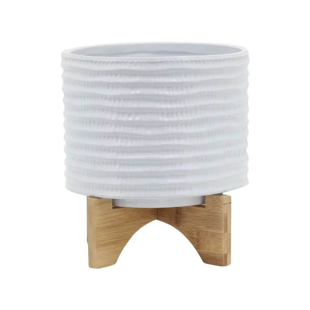 Sevobal Planters Small Plant Pot With Drainage Plug And Stand And Legs For Indoor Home Office Table Plants Flowers Herb, White, 8"*8"*10"
