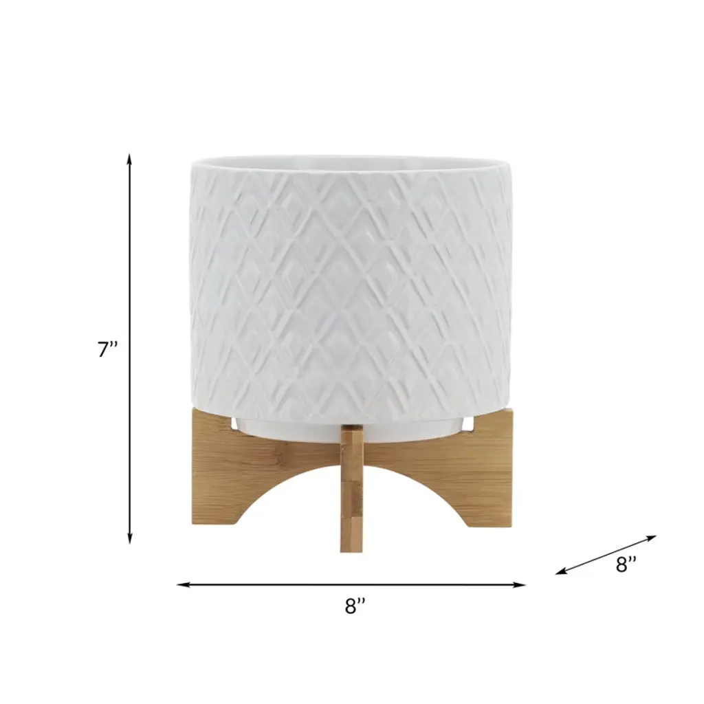 Sevobal Planters Small Plant Pot With Drainage Plug And Stand And Legs For Indoor Home Office Table Plants Flowers Herb, White, 8"*8"*10"