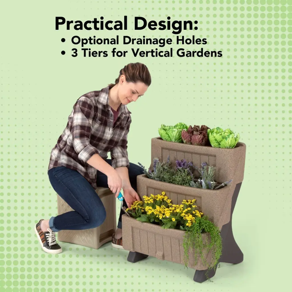 The American Home 3-Level Herb and Flower Vertical Garden Planter makes container gardening simple with the new space saving raised garden bed planter design for all of your gardening needs. Ideal for small spaces, balconies, decks and patios, the three stacked raised planter beds provide substantial planting space for herbs, flower, and vegetable plants. The footprint is efficient and takes advantage of vertical rather than horizontal floor area, so makes adding green space easy wherever desired. The indoor/outdoor planter can replace or expand your garden flower pot collection, and is perfect to start seeds indoors during cool weather and easy to move outdoors when the weather is suitable for outdoor gardening. Easy to assemble and clean, this raised garden bed with legs is weather resistant, won’t warp or crack and can even be kept outside during colder months. Durable plastic with rounded edges is safe even for gardening with children and the space saving design fits on even smaller patios and apartment balconies. Made in the USA.
