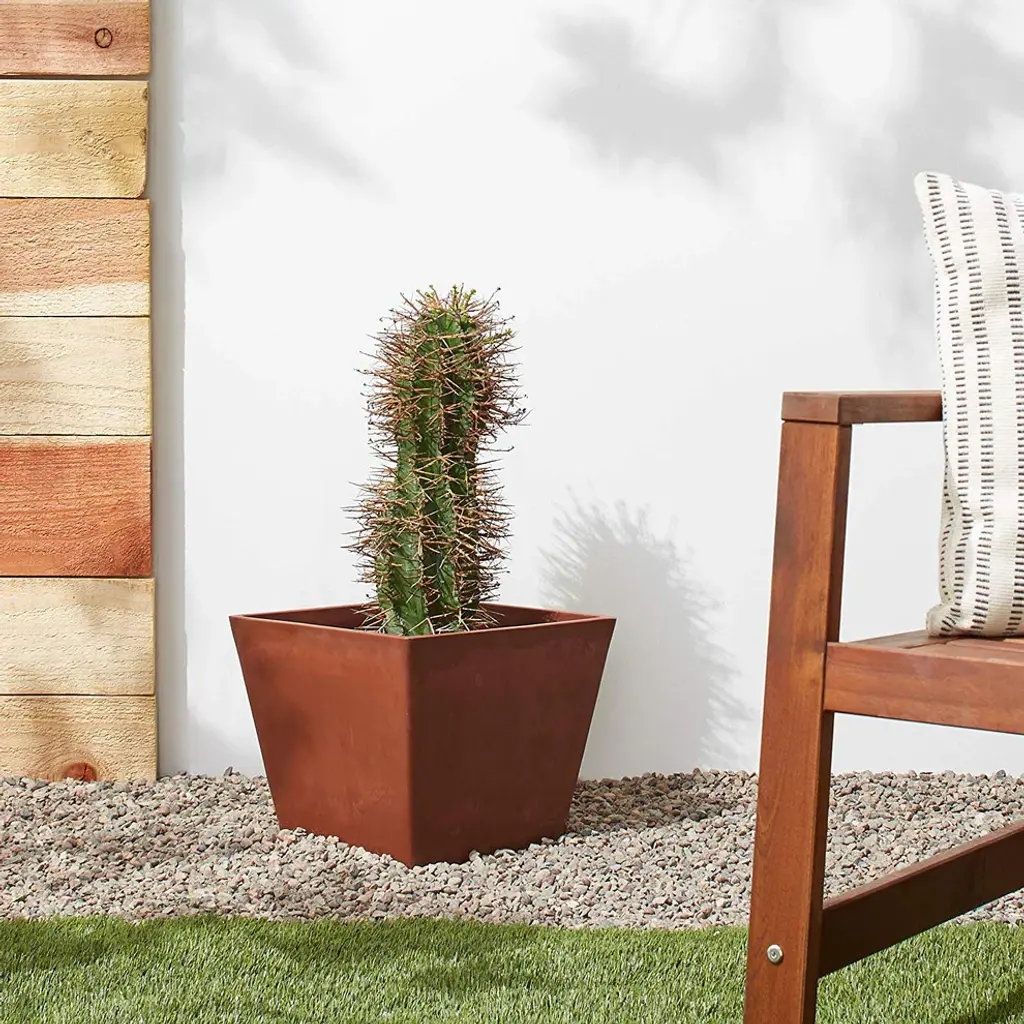 Showcase your favorite flowers and plants in the Simplicity Square Planter. Made from a mix of recycled polymer, stone powder, and wood dust, this burnt orange planter is lightweight, weather-resistant, and durable. Its simple shape and solid color lend to its versatility.