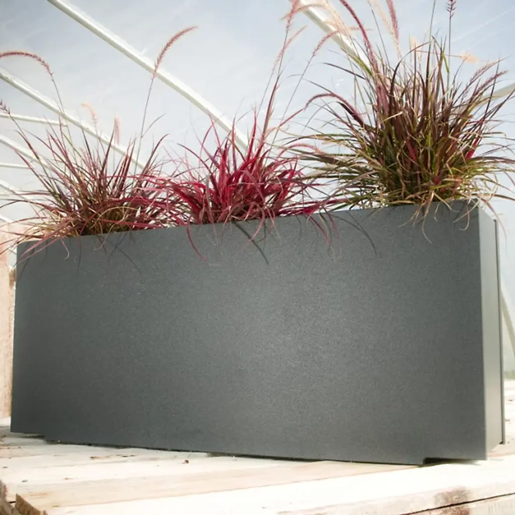 The same height and length as the Mondo Triple Planter, the Loll Designs Skinny Planter has half the width, making it ideal for smaller spaces or as a divider. It is made out of recycled milk jugs and non-recycled HDPE. Also useful as sleek outdoor storage.