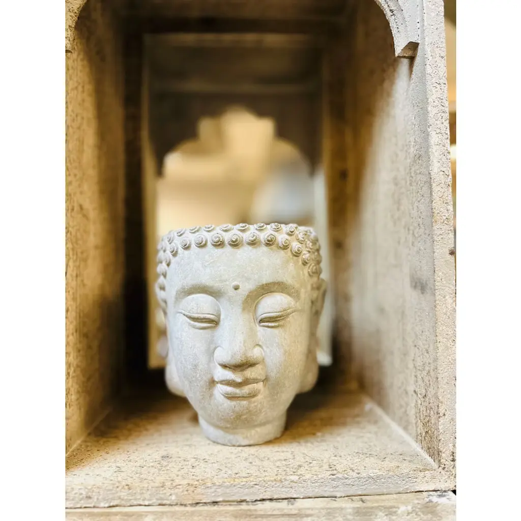 The Large Buddha Cement Planter brings a touch of tranquility to your home or garden with its serene Buddha design. Measuring 5.9 inches in length, 5.3 inches in width, and 6.9 inches in height, this planter is compact and ideal for small plants or succulents. The built-in wall mount hole on the back offers the flexibility to hang the planter, making it a versatile addition to any setting. Crafted from durable cement, this planter combines aesthetic appeal with functionality, perfect for creating a peaceful, zen-inspired atmosphere.