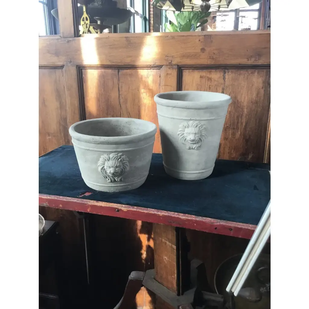 Slickblue Cement Lion Head Planter Pot, Forward Facing Lion, Decorative Plant Pot, Contemporary, Grey, Large