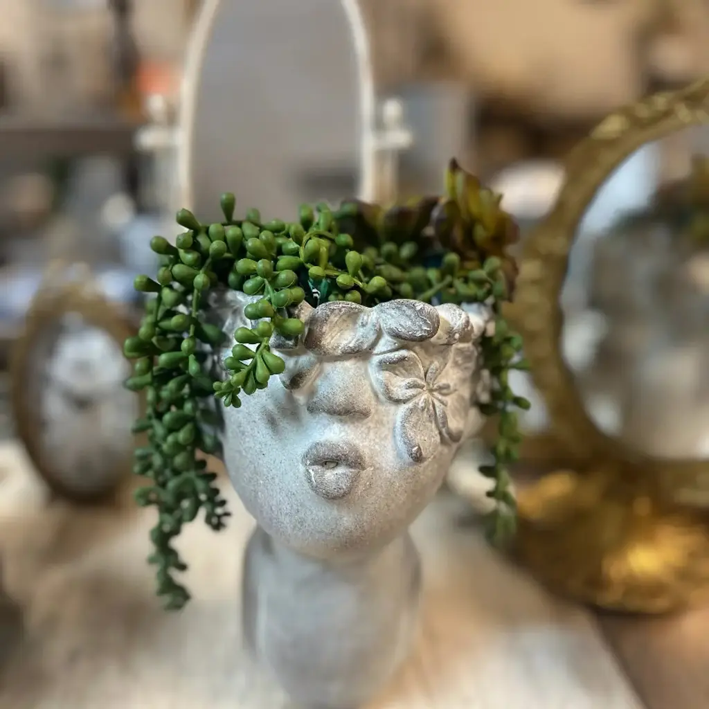 This whimsical concrete planter features a pouting girl’s face, perfect for displaying succulents or small flowers. Available in two design options, each piece adds a playful yet stylish accent to desks, shelves, windowsills, or countertops. The detailed sculpting gives it character, making it a charming decorative piece for living rooms, bedrooms, offices, or patios. Compact and versatile, this planter blends artistic design with practical function, making it an ideal gift for plant lovers and décor enthusiasts.