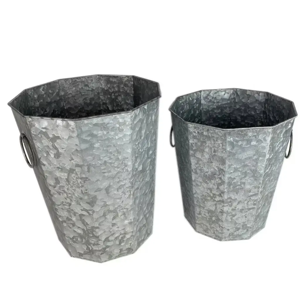 Bring a stylish industrial touch to your home or garden with these Beveled Zinc Planters with Handles. Designed with angled sides and practical handles, they make moving plants or organizing items easy and convenient. Available in small, large, or mixed sets, these planters are perfect for displaying flowers, succulents, herbs, or for holding craft supplies, tools, or other household items. Their versatile design complements a variety of spaces, from desktops and shelves to patios and garden areas.
