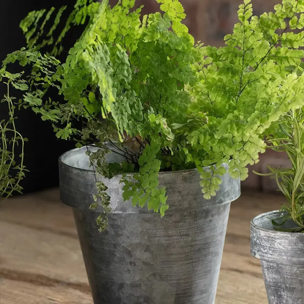 Add industrial-inspired style to your home or garden with this Metal Planter featuring a sleek zinc finish. Available in three sizes, these planters are versatile for displaying flowers, greenery, or decorative arrangements. The small size measures 4.5" x 4.5" x 4.5", while the medium and large sizes measure 5.5" x 5.5" x 5.5", making them perfect for tabletops, windowsills, patios, or entryways. The round shape and metallic tone bring a modern accent to any space, whether used individually or grouped together. Ideal for both indoor and outdoor displays, these planters pair well with a variety of décor styles.