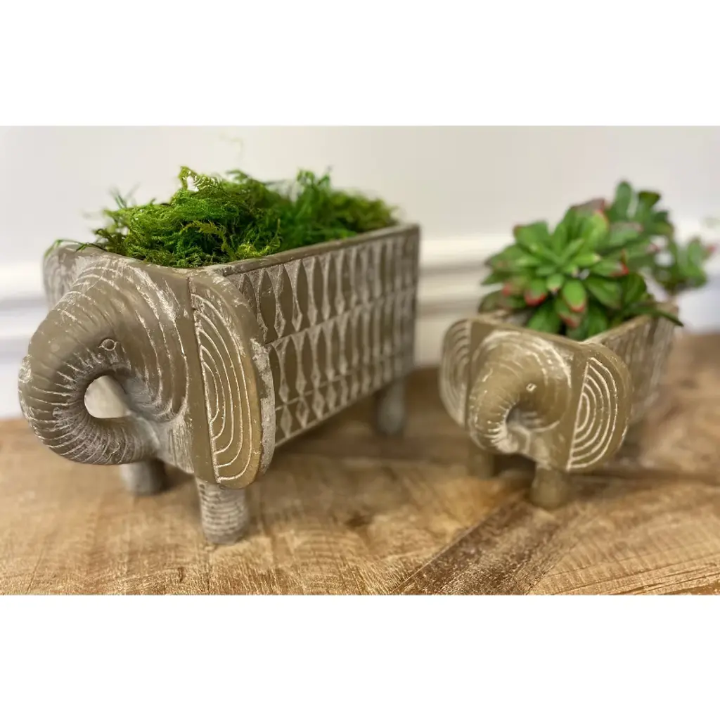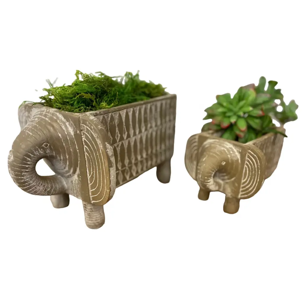 Add a distinctive touch to your home or garden with the Resin Brown Elephant Planter. Designed with an eye-catching elephant shape, this planter is made from resin. The large planter measures 10.2 inches in width, 7.7 inches in depth, and 6.5 inches in height, while the small planter is 7.3 inches wide, 5.1 inches deep, and 4.5 inches high. Both sizes are perfect for displaying a variety of plants and enhancing your decor. These planters provide a stylish and practical way to showcase your greenery.