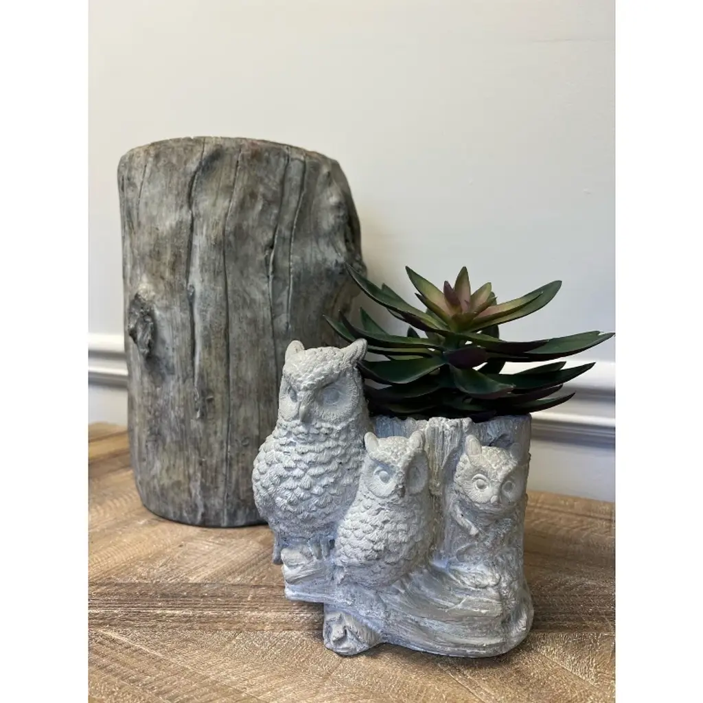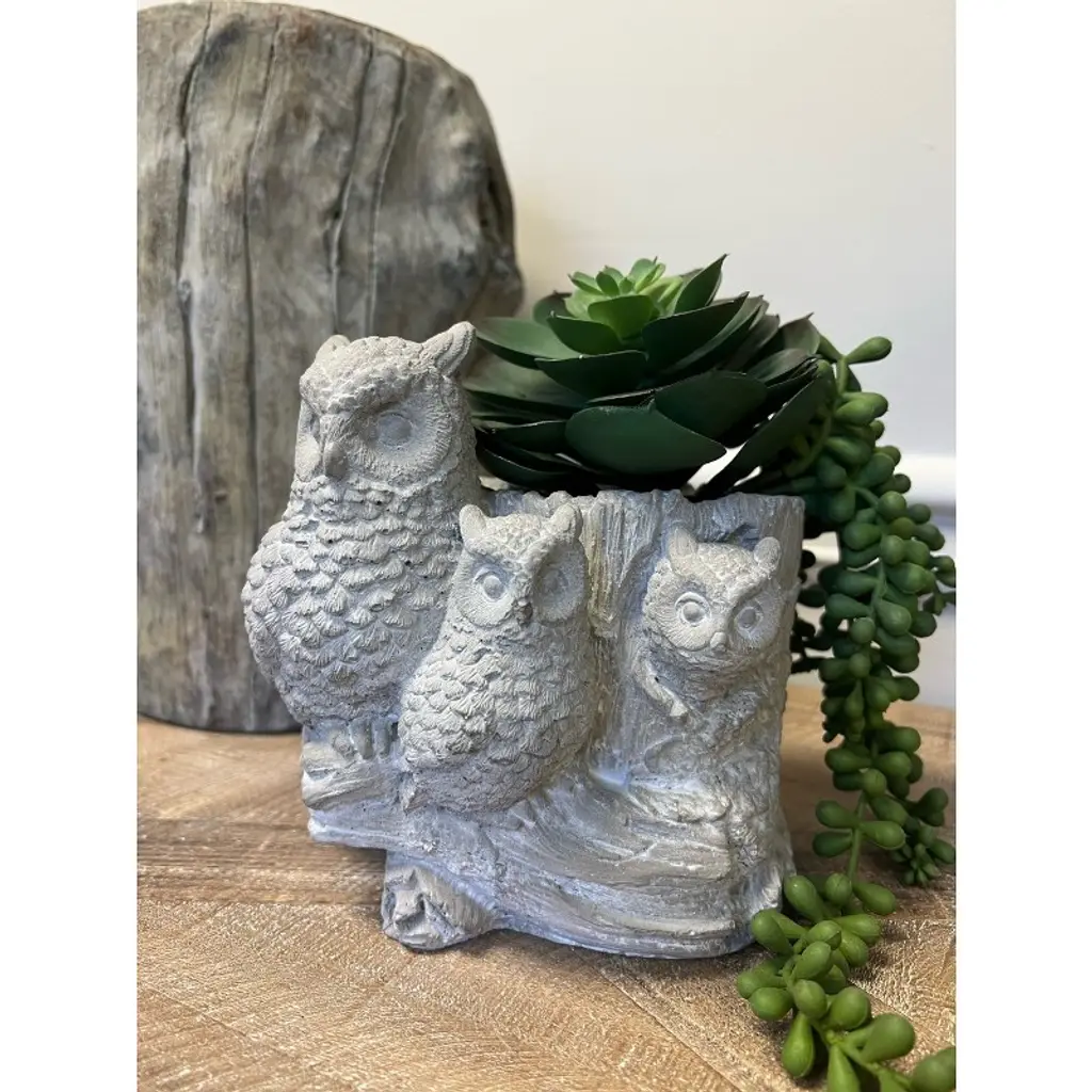 The Cement Pot with Three Owls combines functionality with a delightful design, featuring three intricately detailed owl figures. Measuring 7 inches in diameter and 6 inches in height, this planter is perfect for adding a whimsical touch to both indoor and outdoor spaces. The durable cement construction ensures longevity, while the charming owl design makes it a unique addition to your plant displays. Its compact size is versatile for various plant types and enhances your décor with a playful and eye-catching element.