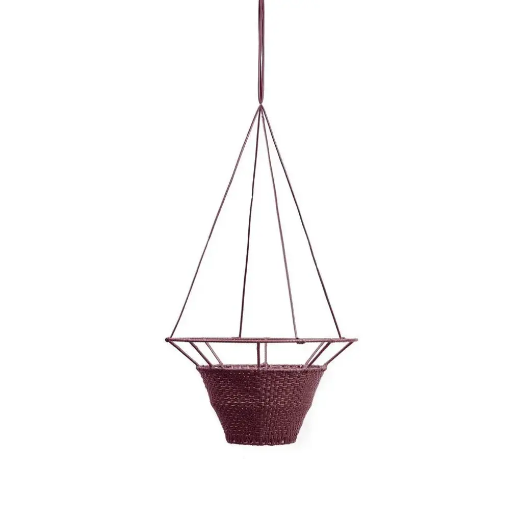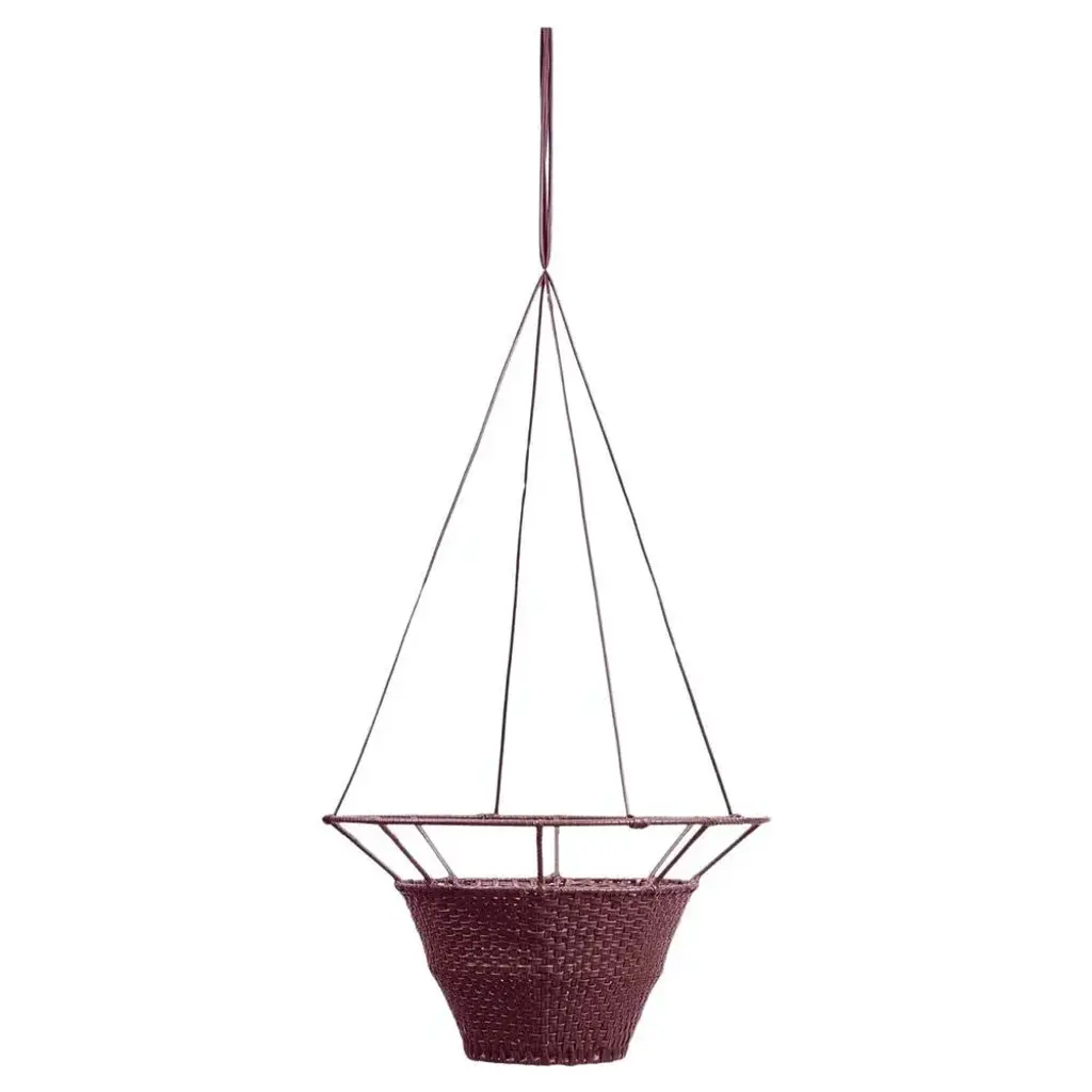 Small dichas hanging planter by Cristina Celestino. Materials: PVC strings made from recycled plastic Dimensions: D 40 x H 17 cm Available in colors: black red, honey yellow, olive green. Available in other size. The Dichas Hanging Planters give every room plant an extraordinary home. Their vibrant colours and large sizes give them an air of extravagance, while their beautifully woven details add a playful touch.