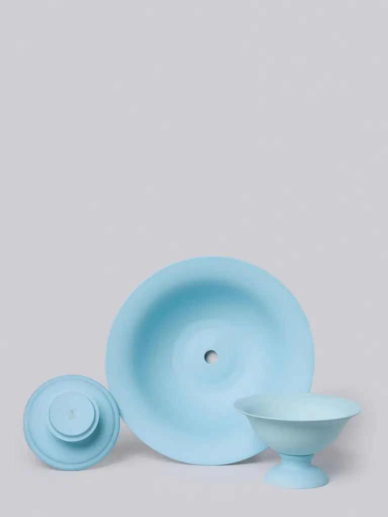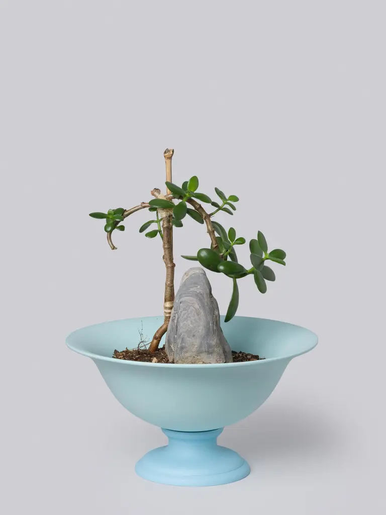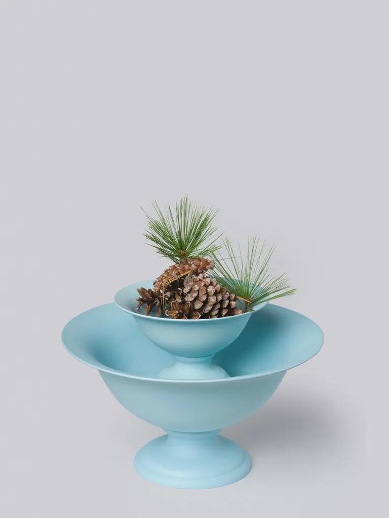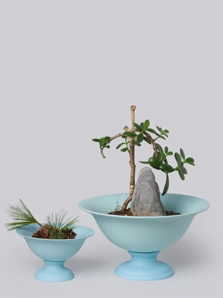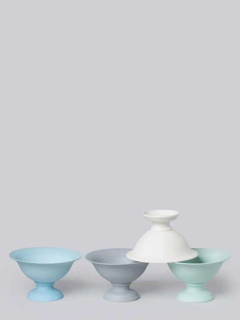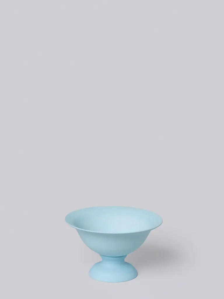 Small Footed Porcelain Vaso Planter In Matte Denim Blue