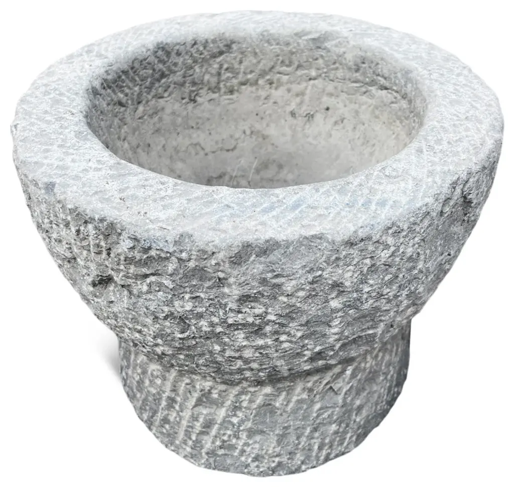Hand carved out of stone, this small light color stone planter is perfect for outdoor as well as indoor use. Item No.: SW1621.1 Dimension: 6.5"D, 4.8"H Material: Stone
