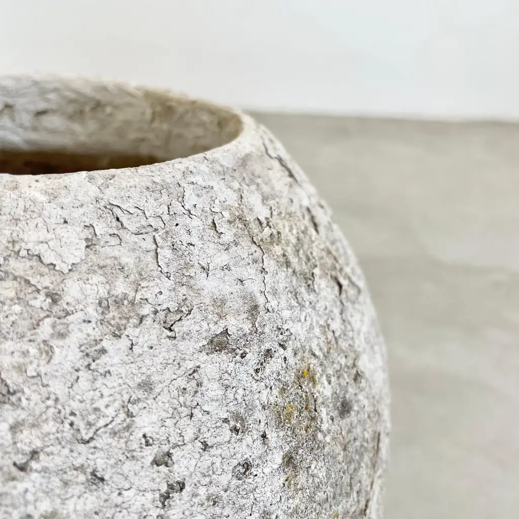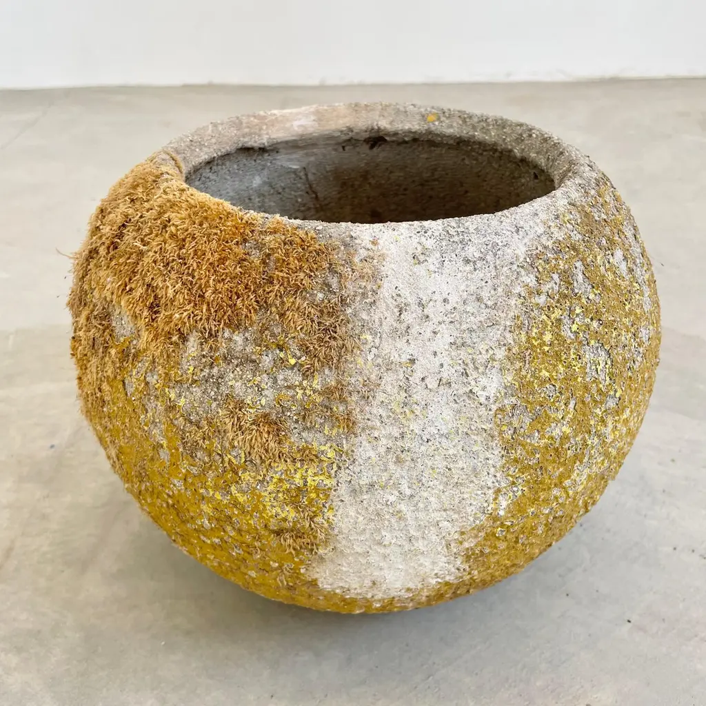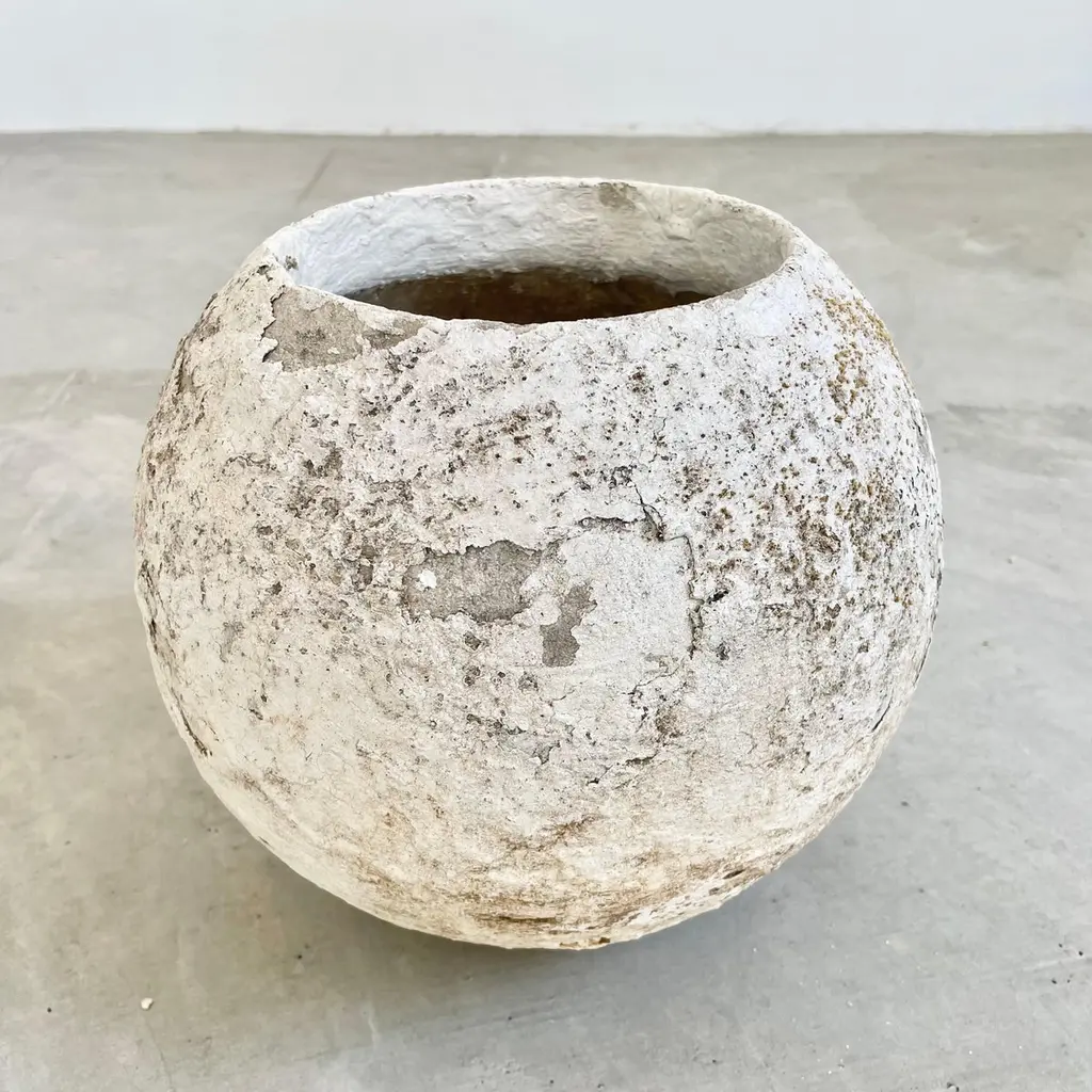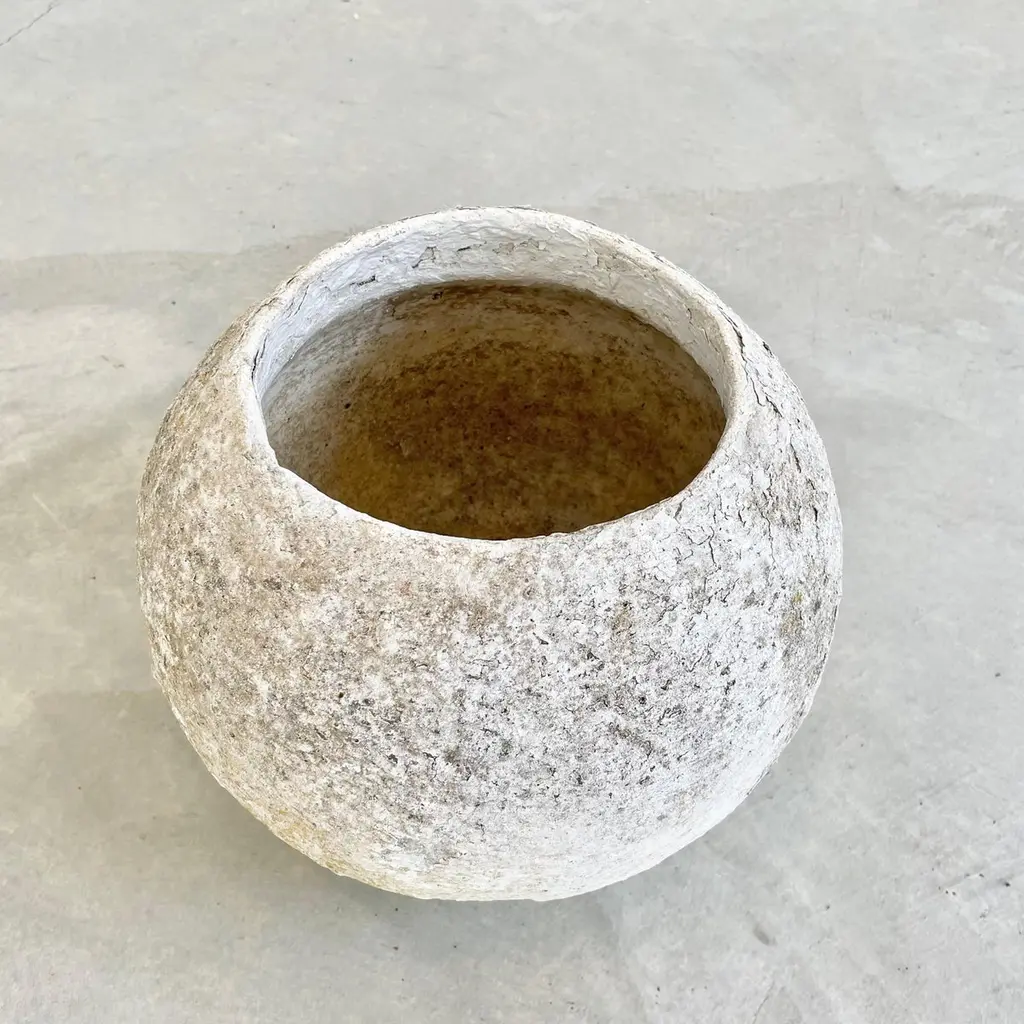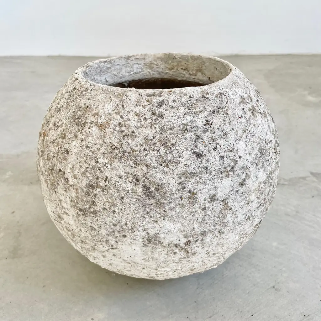 Small concrete Swiss ball planters in the style of Willy Guhl. Great patina to each planter. Great for indoors or outside. Heavy and substantial. Priced individually. Larger sizes available in separate listings.