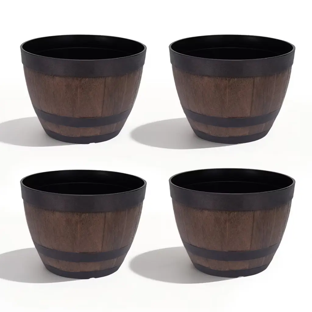 This eye-catching whiskey barrel planter is perfect for adding a touch of rustic charm to your outdoor space. The Southern 12.2 in. H X 20.5 in. W X 20.5 in. D Resin Whiskey Barrel Planter Brown is made of durable resin and features a realistic wood grain texture. This planter is ideal for showcasing your favorite plants and flowers, and it makes a great addition to any patio, deck, or garden. HDR construction for a lightweight and durable planter. UV coated finish provides a weather resistant, long lasting color. Resin construction withstands outdoor seasonal elements and everyday use.