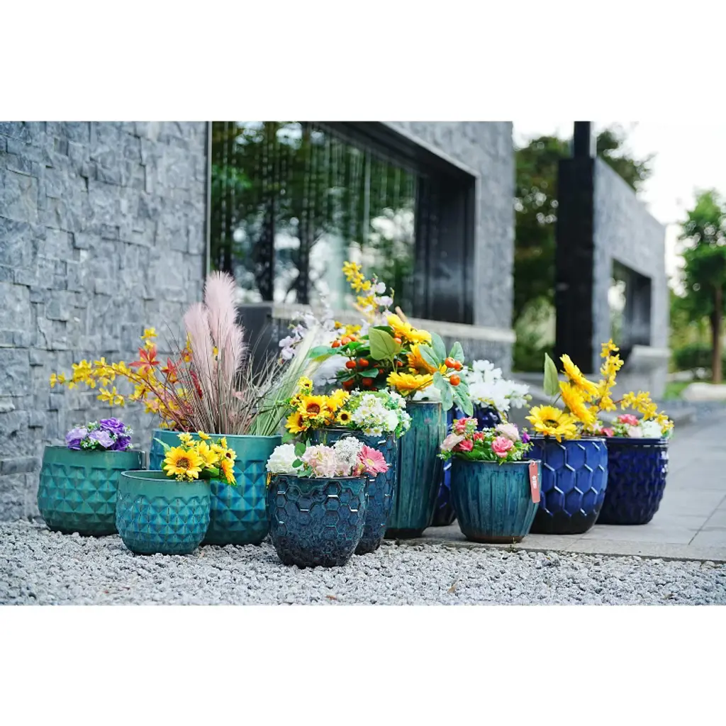 Spassway 14" Dia Blue Outdoor Ceramic Planters Indoor Planter Pots With Drainage Hole Decorative Flower Pots Set Of 3