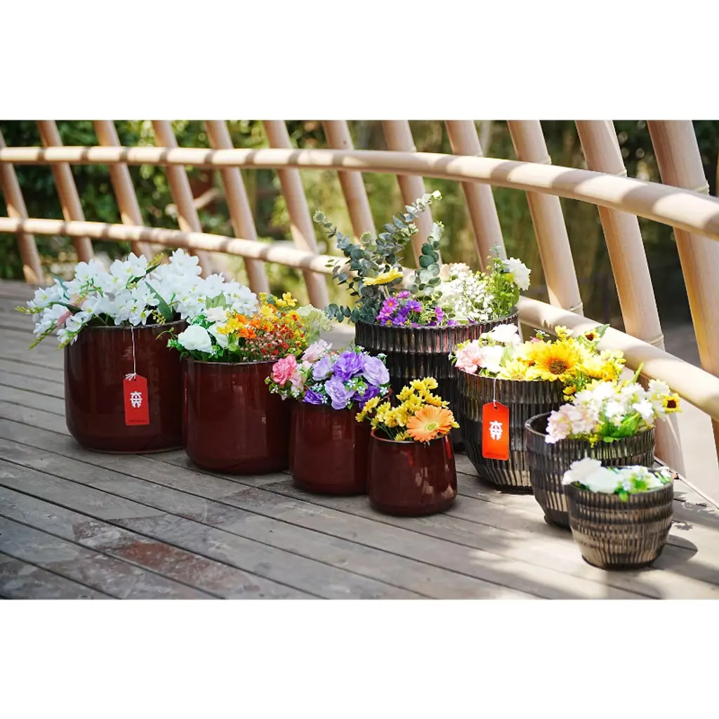 Spassway 14" Dia Red Outdoor Ceramic Planters Indoor Planter Pots With Drainage Hole Decorative Flower Pots Set Of 4