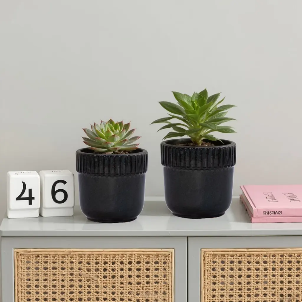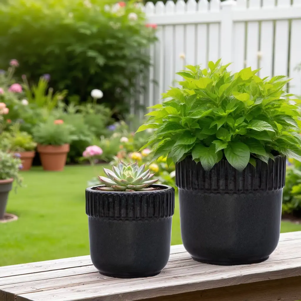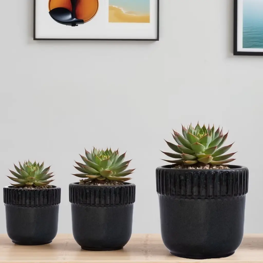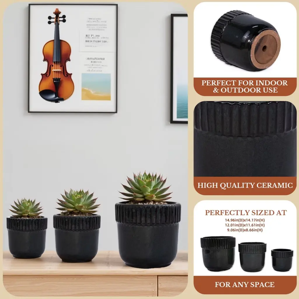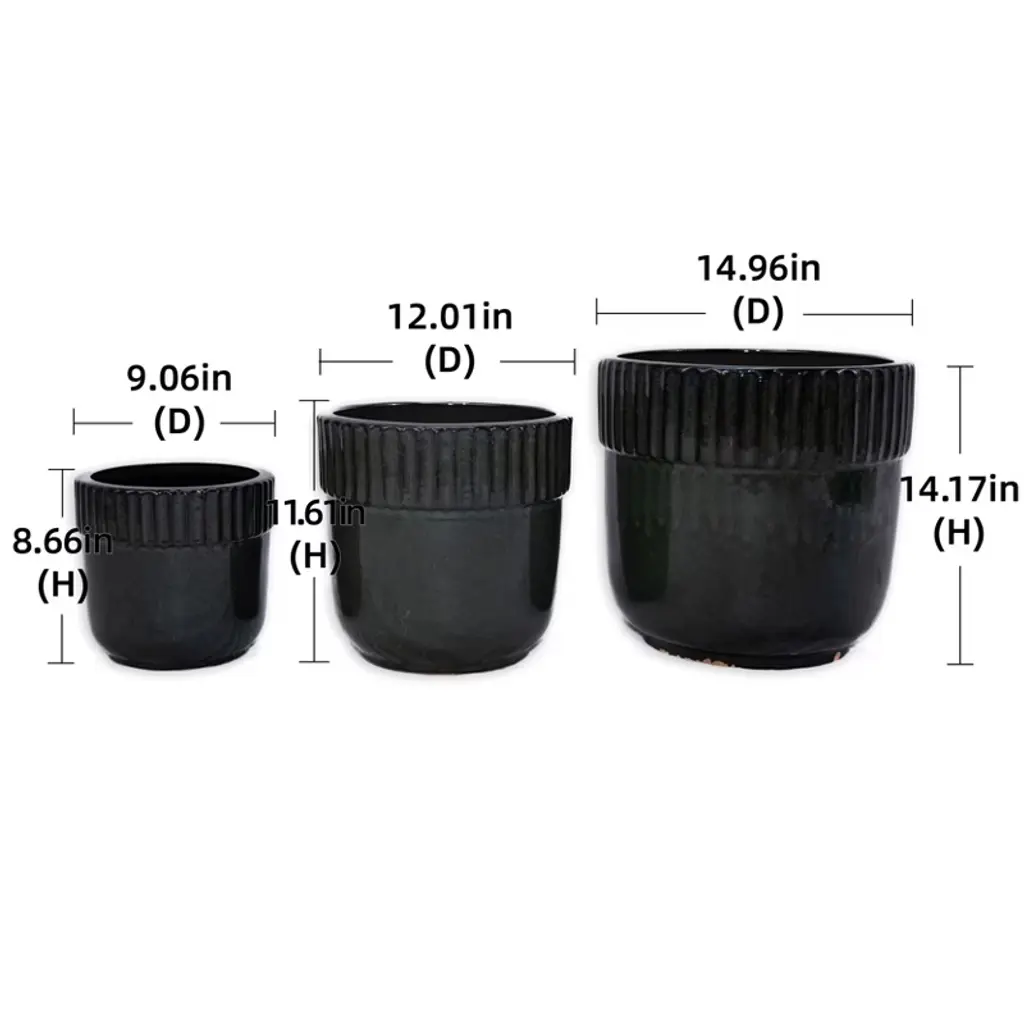 Spassway 15" Dia Black Outdoor Ceramic Planters Indoor Planter Pots With Drainage Hole Decorative Flower Pots Set Of 3
