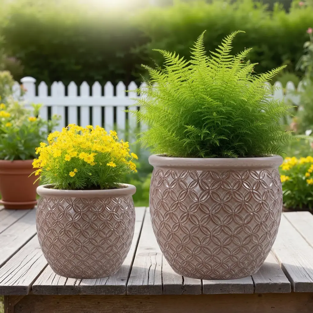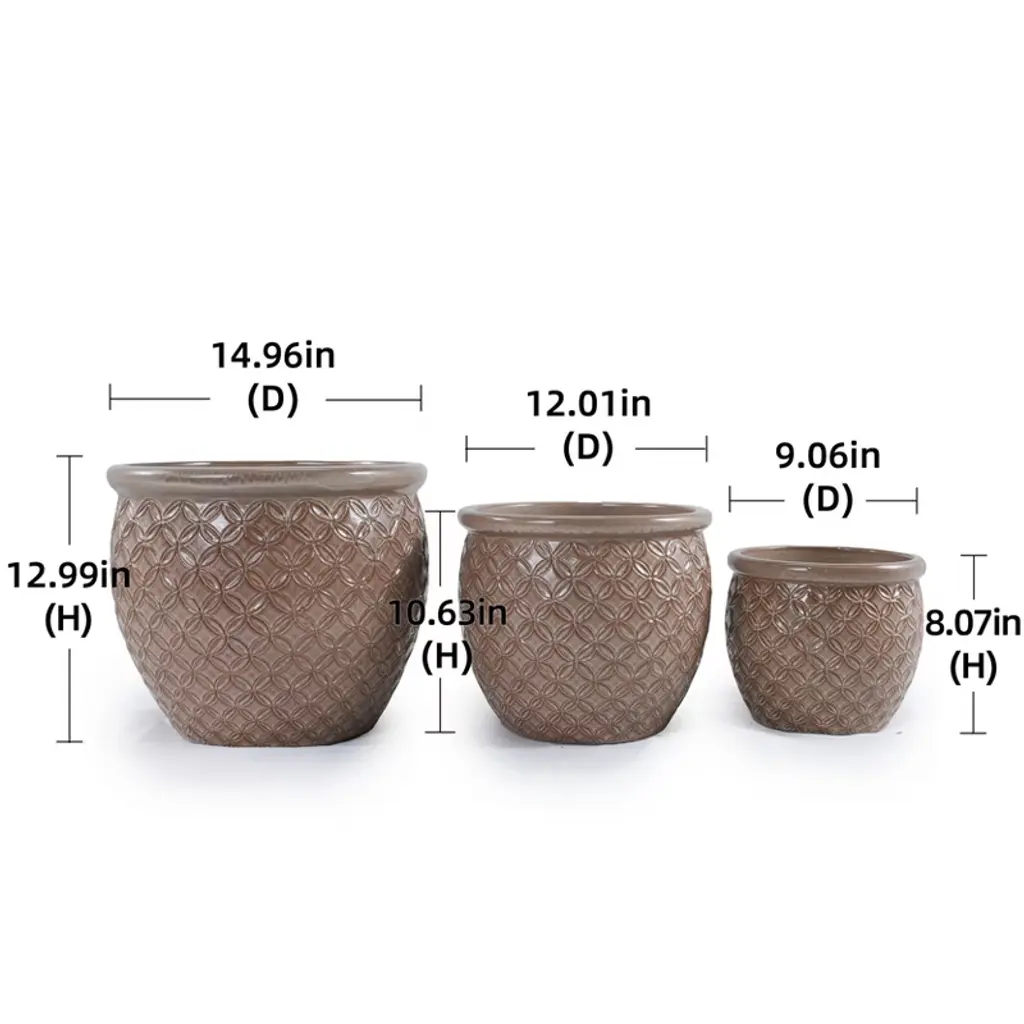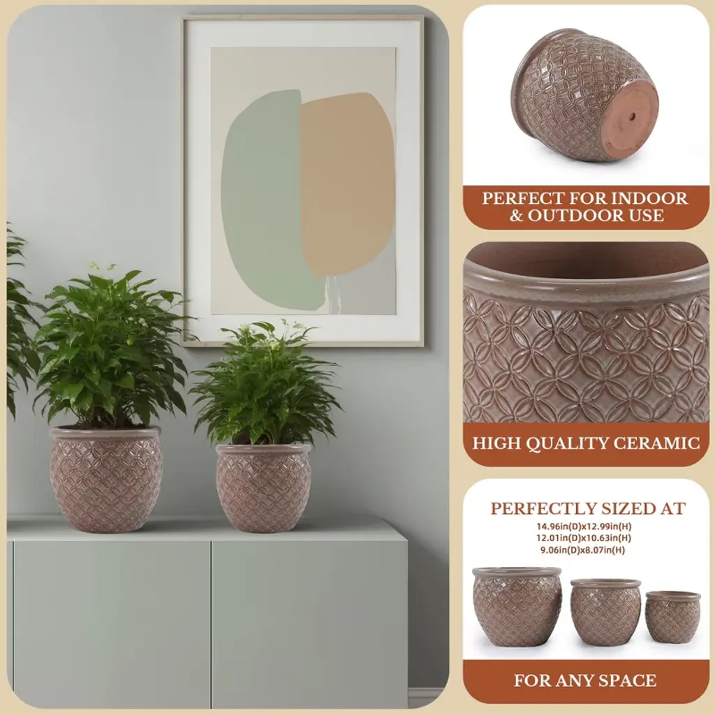 Spassway 15" Dia Brown Outdoor Ceramic Planters Indoor Planter Pots With Drainage Hole Decorative Flower Pots Set Of 3