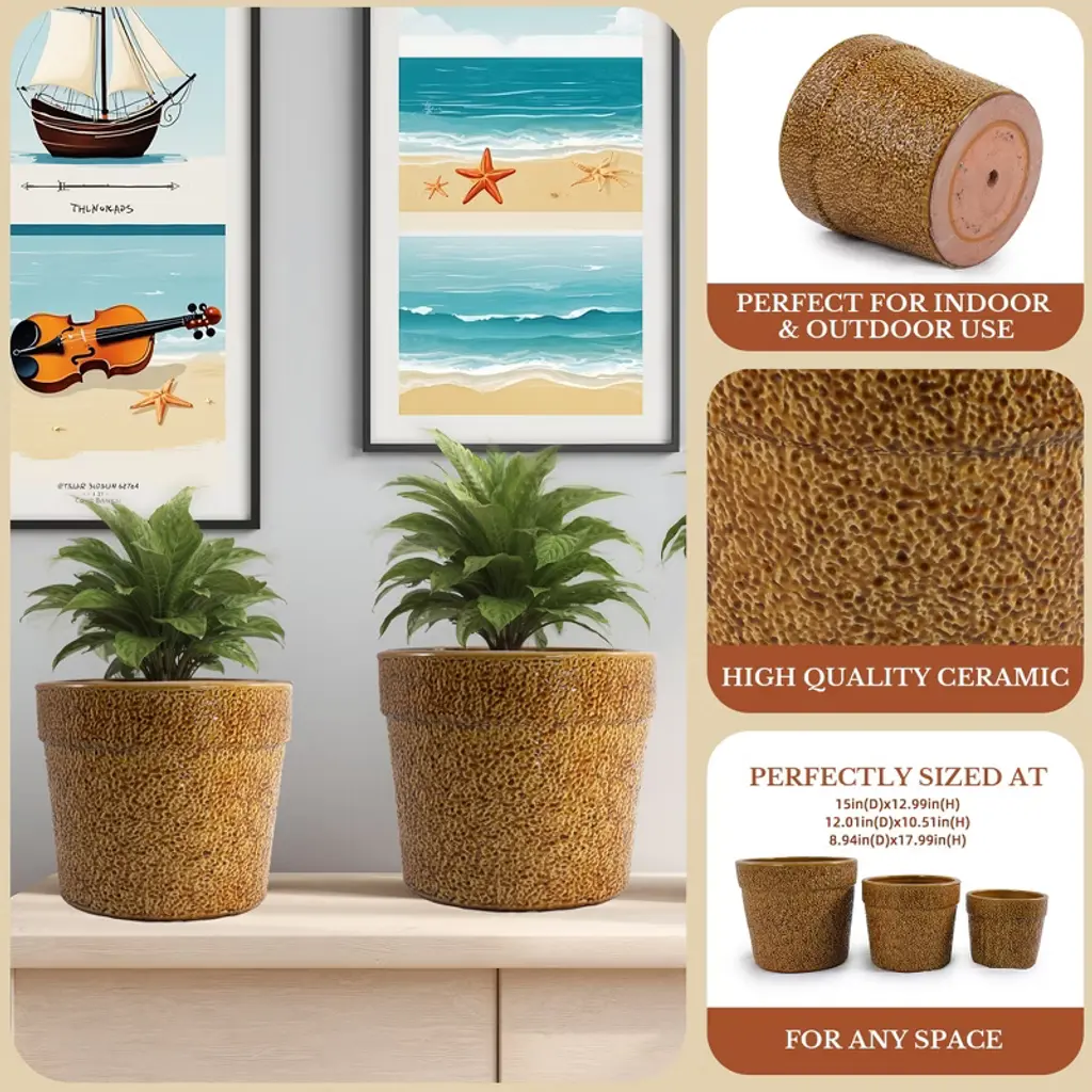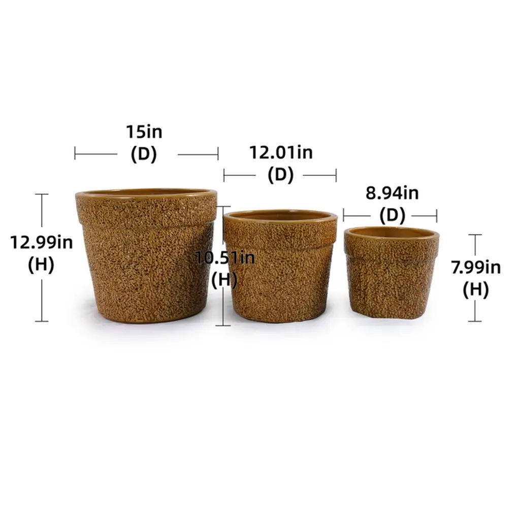 Spassway 15" Dia Brown Outdoor Ceramic Planters Indoor Planter Pots With Drainage Hole Decorative Flower Pots Set Of 3