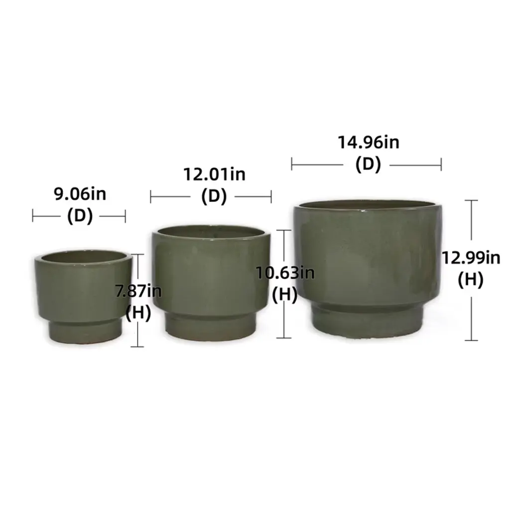 Spassway 15" Dia Green Outdoor Ceramic Planters Indoor Planter Pots With Drainage Hole Decorative Flower Pots Set Of 3