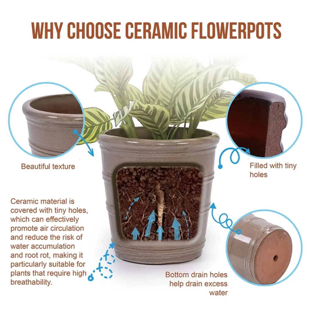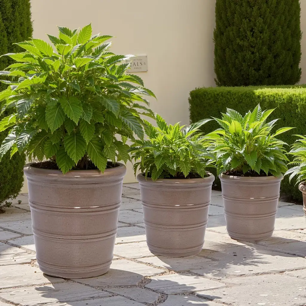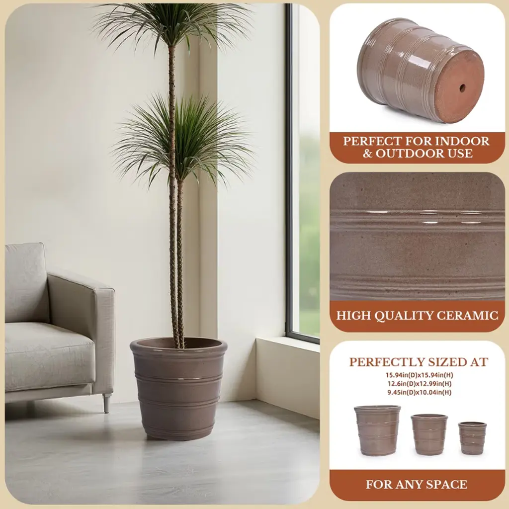 Spassway 16" Dia Khaki Outdoor Ceramic Planters Indoor Planter Pots With Drainage Hole Decorative Flower Pots Set Of 3