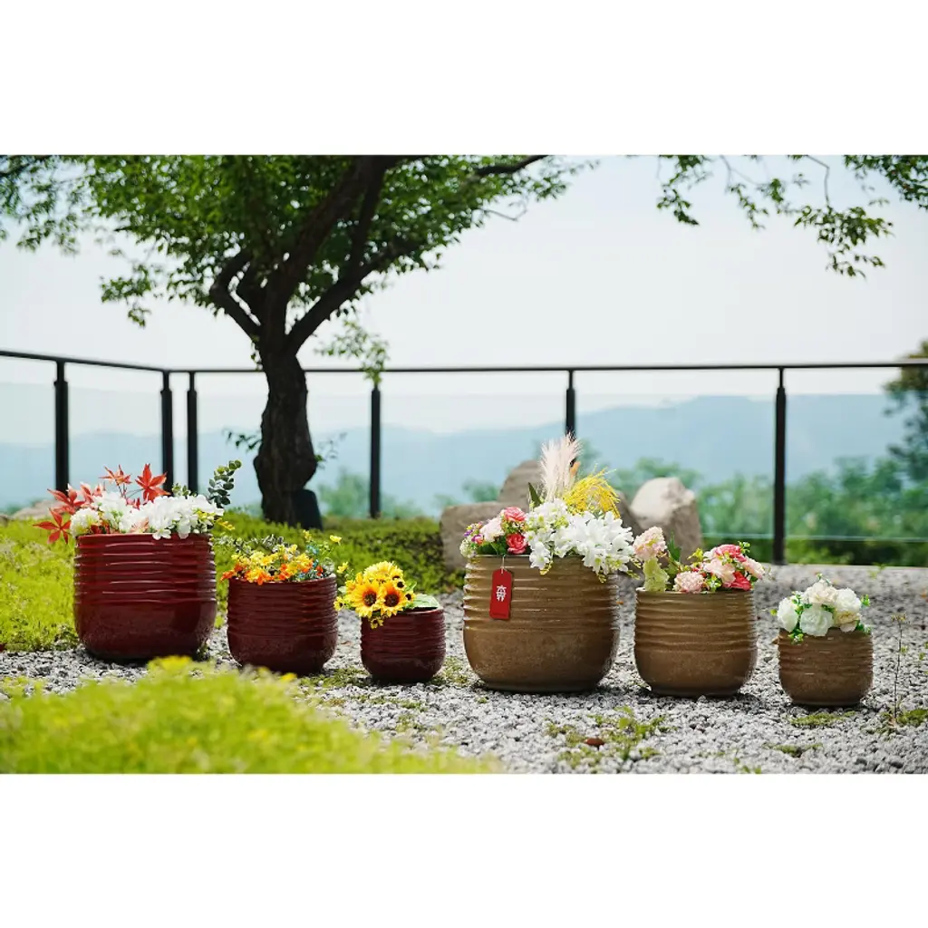 Spassway 22" Dia Brown Outdoor Ceramic Planters Indoor Planter Pots With Drainage Hole Decorative Flower Pots Set Of 3