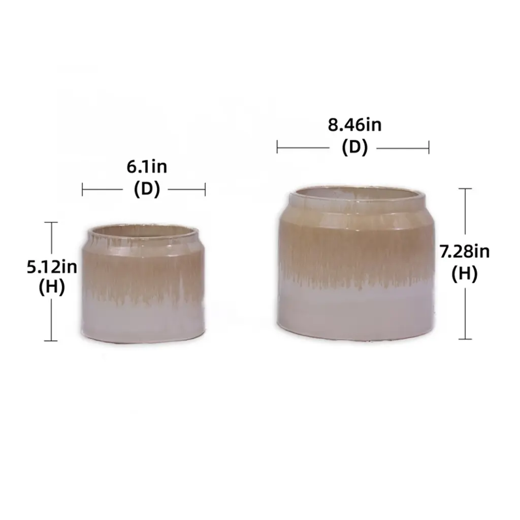 Spassway 8" Dia Beige Outdoor Ceramic Planters Indoor Planter Pots With Drainage Hole Decorative Flower Pots Set Of 2