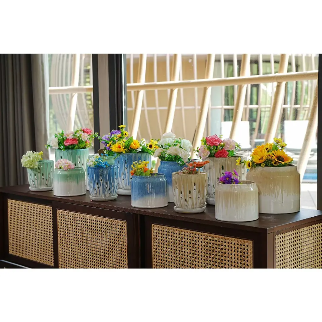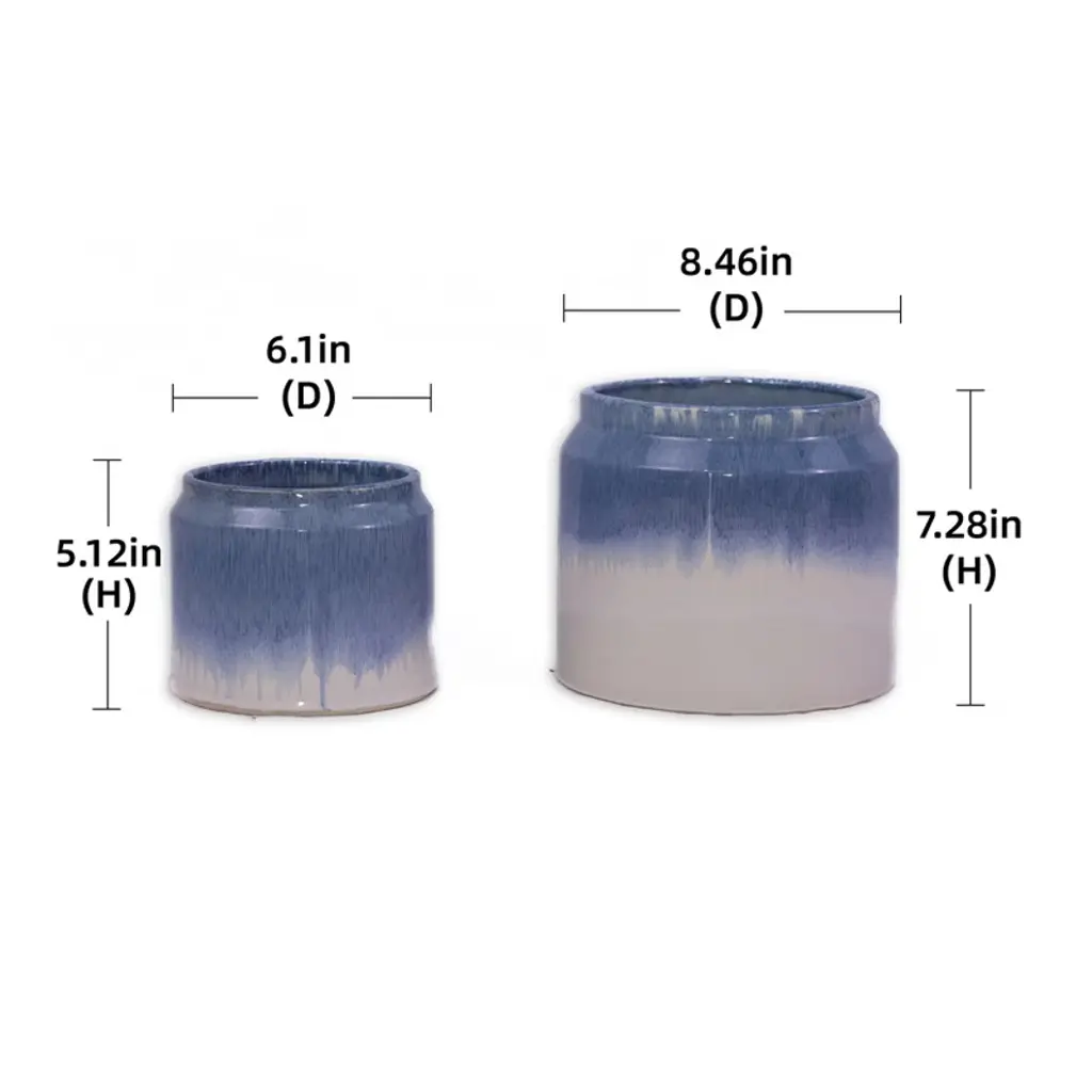Spassway 8" Dia Blue Outdoor Ceramic Planters Indoor Planter Pots With Drainage Hole Decorative Flower Pots Set Of 2