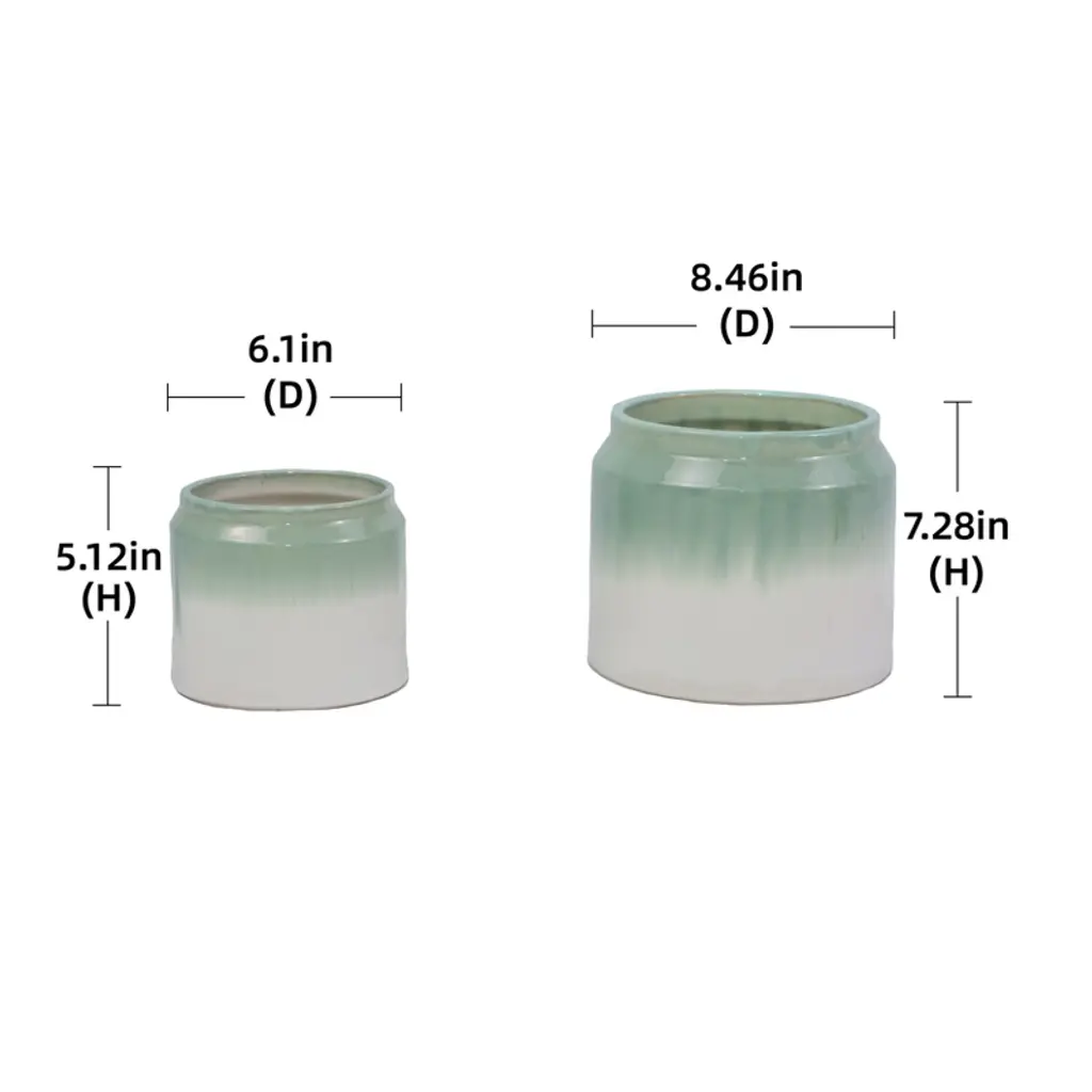 Spassway 8" Dia Green Outdoor Ceramic Planters Indoor Planter Pots With Drainage Hole Decorative Flower Pots Set Of 2