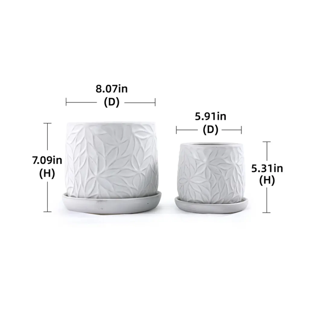 Spassway 8" Dia White Outdoor Ceramic Planters Indoor Planter Pots With Drainage Hole Decorative Flower Pots Set Of 2