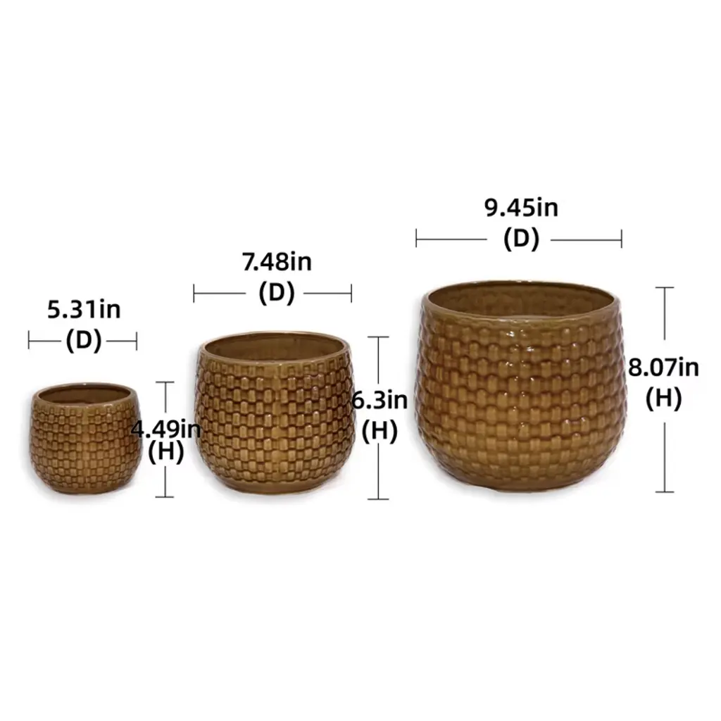 Spassway 9" Dia Brown Outdoor Ceramic Planters Indoor Planter Pots With Drainage Hole Decorative Flower Pots Set Of 3