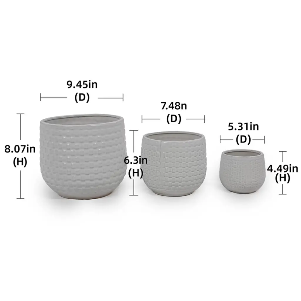 Spassway 9" Dia White Outdoor Ceramic Planters Indoor Planter Pots With Drainage Hole Decorative Flower Pots Set Of 3