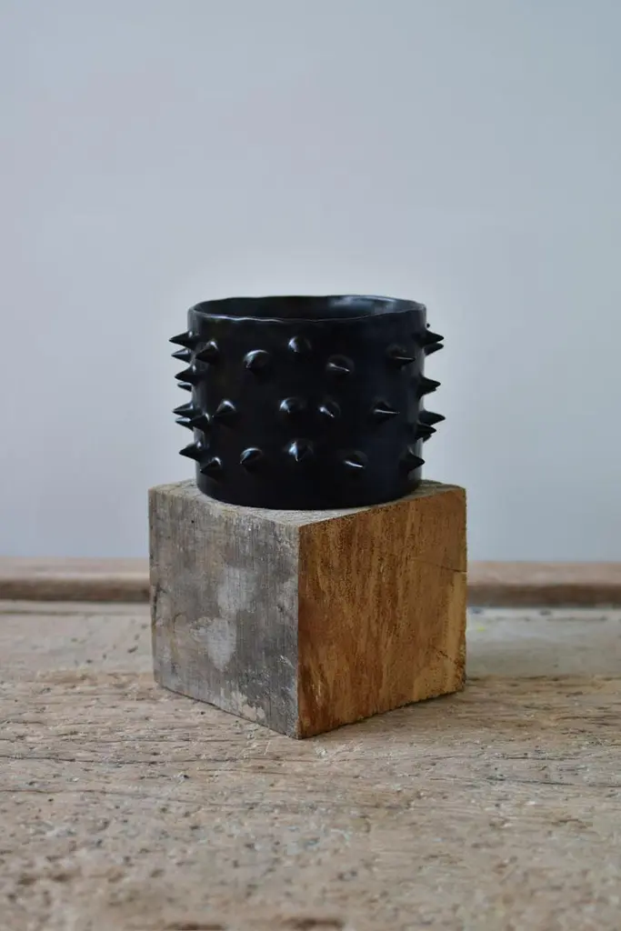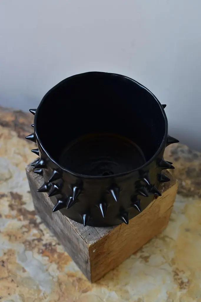 Beautiful ceramic handmade planter. Carefully crafted, each black ceramic plant pot is thrown and trimmed on the wheel, and every outer spike is individually attached by hand. Finished with a hand-applied satin black glaze.As a result, each handmade ceramic planter is unique and a true object of art, perfect for accentuating the beauty of your houseplants.Suitable for indoor or outdoor plants, includes a drainage hole at the bottom. The inside of the pot is also glazed, which makes it practical for use and easy to clean.✺ Dimensions 15cm. (W) and 15cm. (H) / 5.9" (W) and 5.9" (H)✺ Custom sizeThe planter size is totally customizable. Just share the measurements you'd like, and we'll create it accordingly.✺ Handmade and one-of-a-kindBecause every black ceramic planter is made by hand, variation in size and shape are to be expected. Handmade in Buenos Aires, Argentina