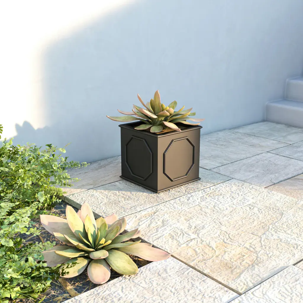 Item Specifications:Benefit from the longevity of a planter that combines the strength of fiberstone and MgO clay, providing a durable and resilient structure for long-lasting use.Embrace the allure of geometric beauty with our planter''s captivating square shape. It adds a touch of modern sophistication to your surroundings, making it a striking focal point that seamlessly integrates into various decor styles.Each planter is a masterpiece of craftsmanship, meticulously handcrafted to perfection, reflecting a blend of skill and dedication that results in a truly unique and artistic piece.Ensure optimal plant health with strategically placed drainage holes and drill holes, providing a reliable solution to prevent waterlogging and promote thriving greenery.The planter comes with a protective cover, providing added protection against the elements and extending its lifespan, ensuring it remains pristine for years to come.Confront the elements confidently as the planter boasts weather-resistant properties, maintaining its beauty in the face of sun, rain, and changing seasons.Whether adorning your living room, balcony, or garden, this planter seamlessly transitions between indoor and outdoor spaces, elevating the ambiance wherever it''s placed.Item Dimensions:8 Inch: 7.9" H x 7.9" W x 7.9" D10.2 Inch: 10.2" H x 10.2" W x 10.2" D12.6 Inch: 12.5" H x 12.5" W x 12.5" D15 Inch: 15" H x 15" W x 15" D17.7 Inch: 18" H x 18" W x 18" D21.7 Inch: 21.7" H x 21.7" W x 21.7" D25.6 Inch: 25.6" H x 25.6" W x 25.6" DItem Description:Introducing the Sprout Square Planter, a testament to meticulous craftsmanship and functional design. Crafted from a fusion of fiberstone and MgO clay, this planter stands as an exemplary blend of durability and artistry. Its square shape exudes modern elegance, making it a distinctive addition to both indoor and outdoor spaces. Weather resistance is a hallmark of this planter, making it impervious to the challenges posed by diverse weather conditions. From scorching sun to rain, it maintains its structural integrity and aesthetic appeal, offering a resilient solution for year-round use. Whether placed indoors as a focal point or outdoors as part of your garden landscape, this planter seamlessly integrates into various environments. Versatility defines its purpose, effortlessly transitioning between indoor and outdoor use. To further enhance its longevity, each planter comes with a protective cover. This cover acts as a shield against the elements, ensuring that the planter remains in pristine condition and your plants thrive undisturbed. Elevate your gardening experience with our Sprout Planter - a harmonious blend of durability, aesthetic appeal, and functional design.