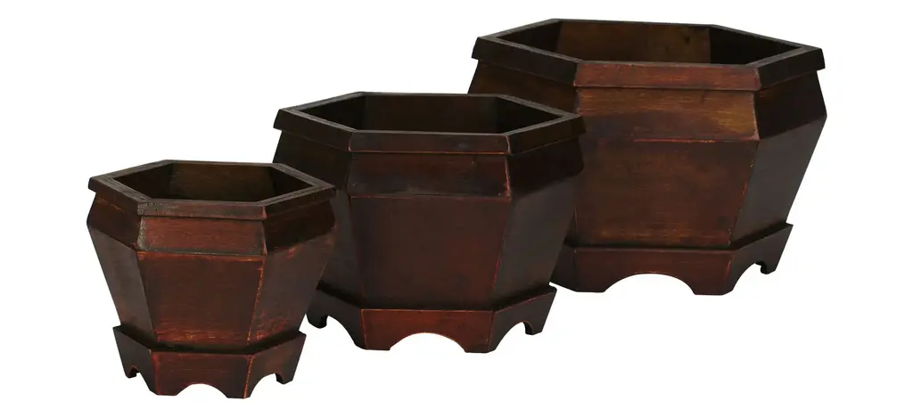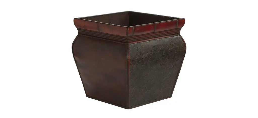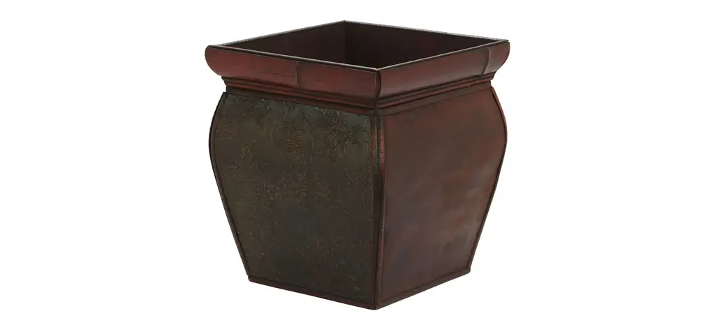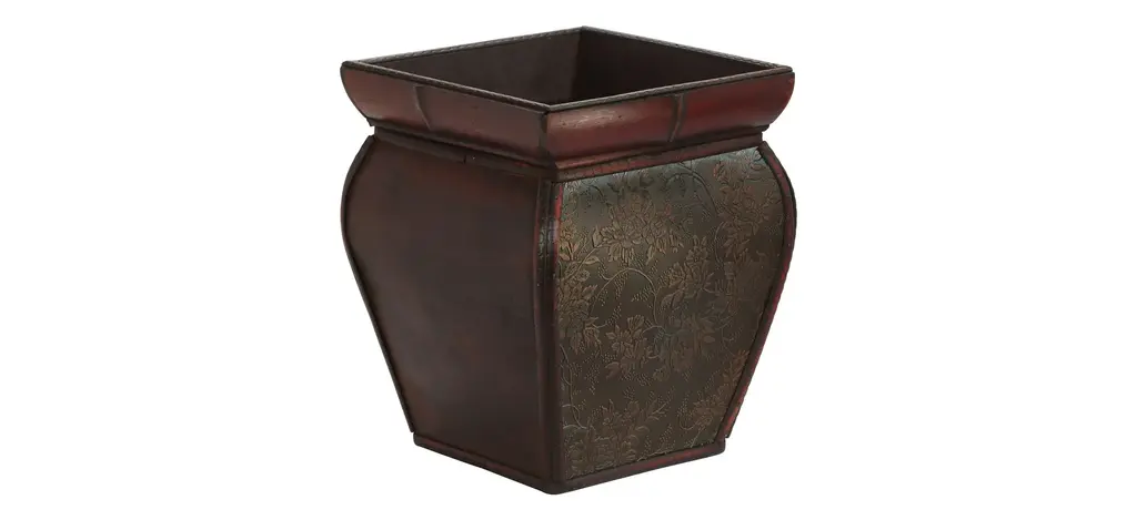 Place the Square Planters with Rim Set of 4 together for a Russian Doll effect or separately to enhance any room's decor. These planters are decorated with a deep burgundy finish, pressed floral decoration, and accented by a bamboo style rim.