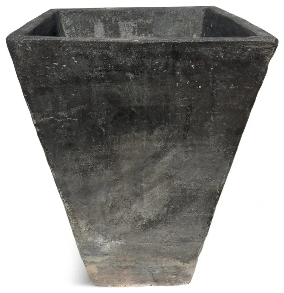 This Tall Square planter is crafted of ceramic with a Storm Gray glaze. Suitable for outdoor and indoor use. Adds color and texture to your home or garden.