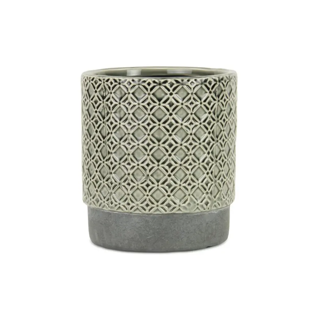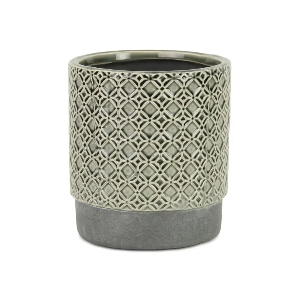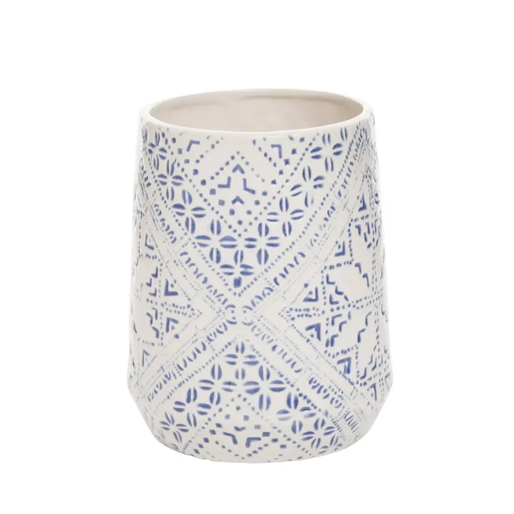 Our handcrafted ceramic tabletop planter gets its flower power from an allover stylized floral motif. The kiln-glazed finish lends incredible shine to the vessel, highlighting the detailed design.
