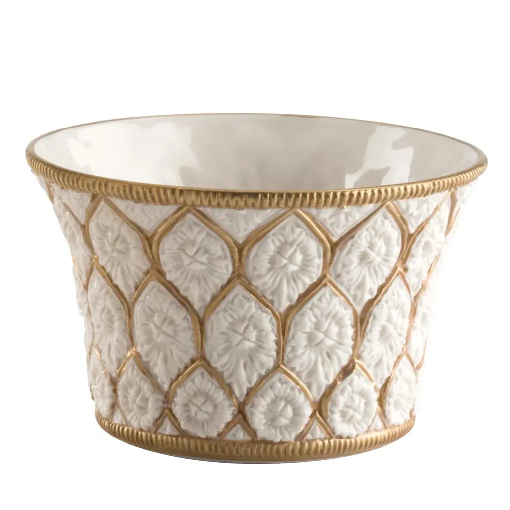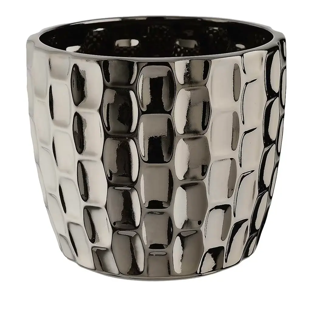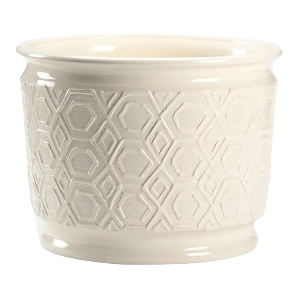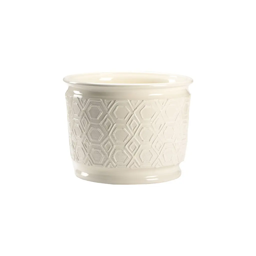 Our handcrafted ceramic tabletop planter gets its flower power from an allover stylized floral motif. The kiln-glazed finish lends incredible shine to the vessel, highlighting the detailed design.
