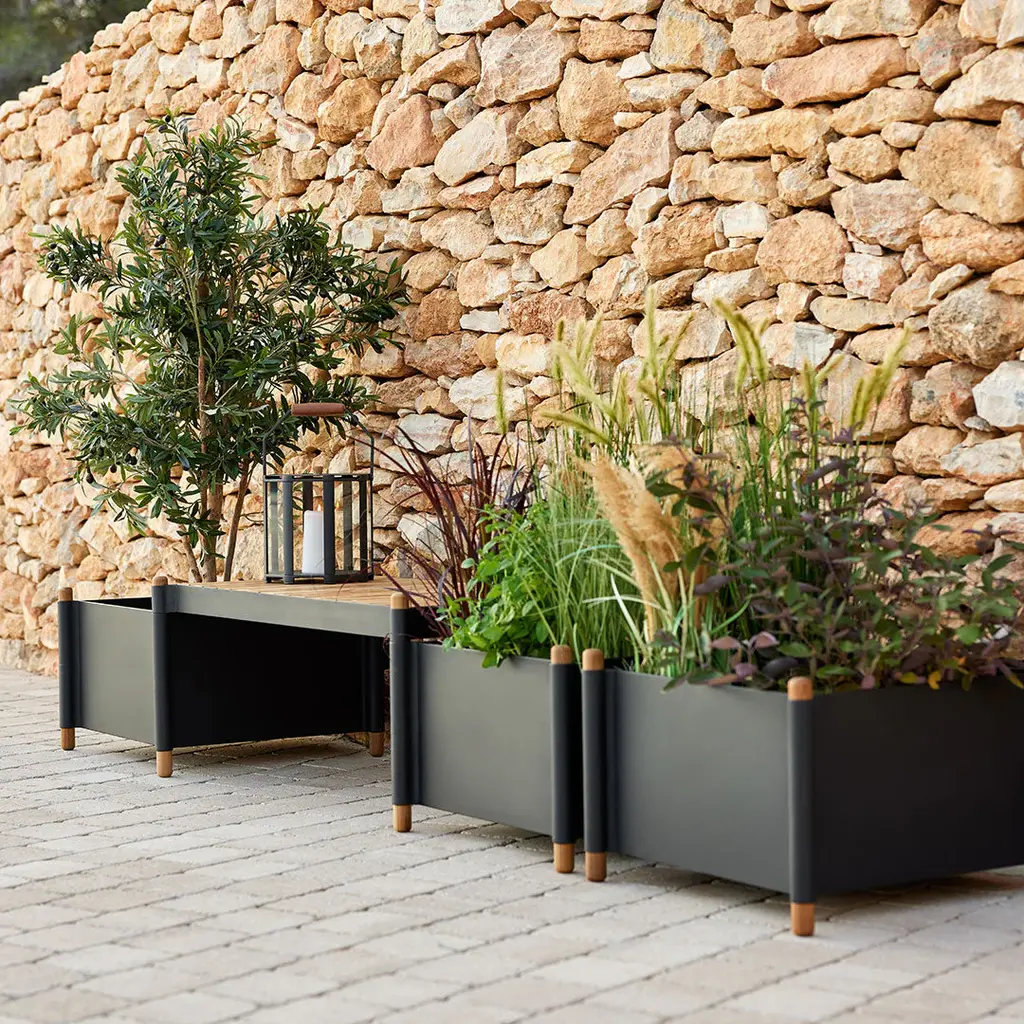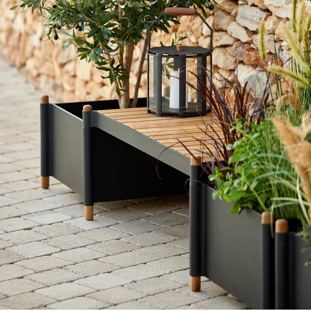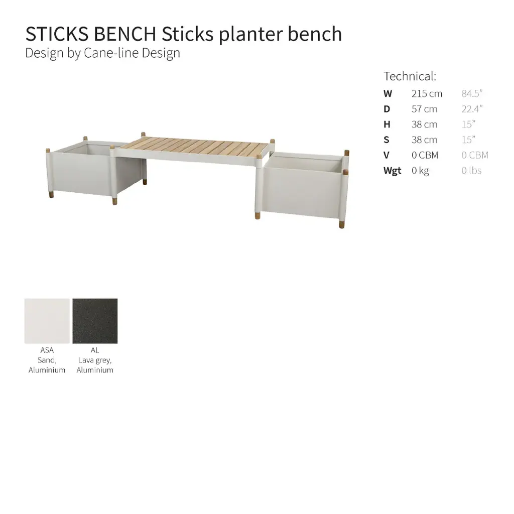 Sticks is inspired by nature's elegance, simple sticks which together forms a unique outdoor collection. With the combination of an outdoor bench and planters, you can introduce a harmonious oasis into your garden - a sanctuary where you can contemplate, recharge, and immerse yourself in nature. Our Sticks planters can be easily integrated into a customizable system alongside the Sticks planter bench, allowing you to tailor your outdoor space to perfectly suit your unique needs and available space. Setup Includes: [1] Teak Planter Bench [2] Planter
