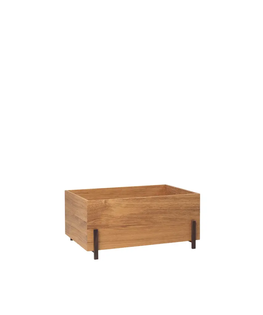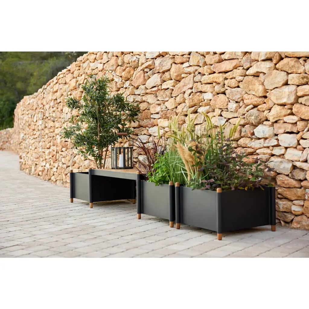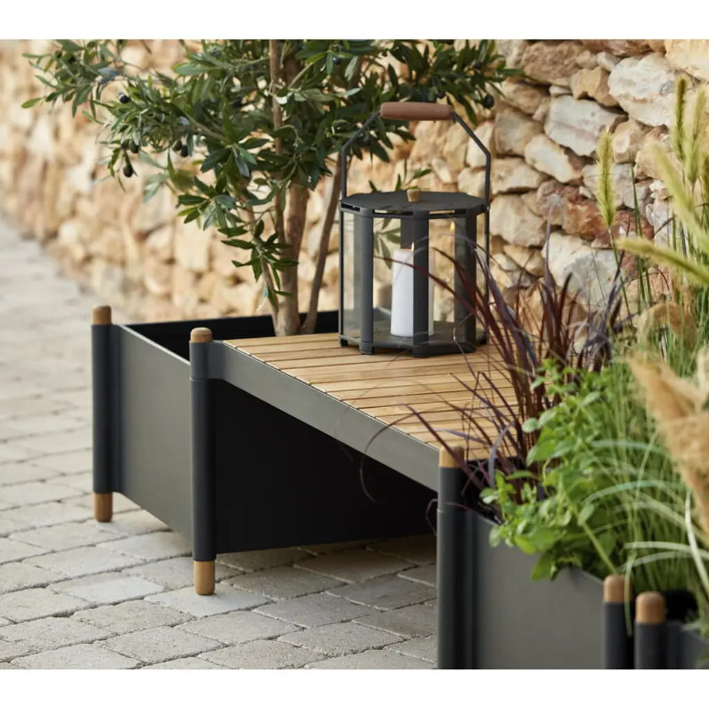 Cane-line's Sticks planter is designed to be compatible with the Sticks bench top. The pot is made of aluminum and teak, which is ideal for outdoor use and varying weather conditions. Grow your favorite plants in the pots, place them at the ends of the bench and enjoy your green oasis!