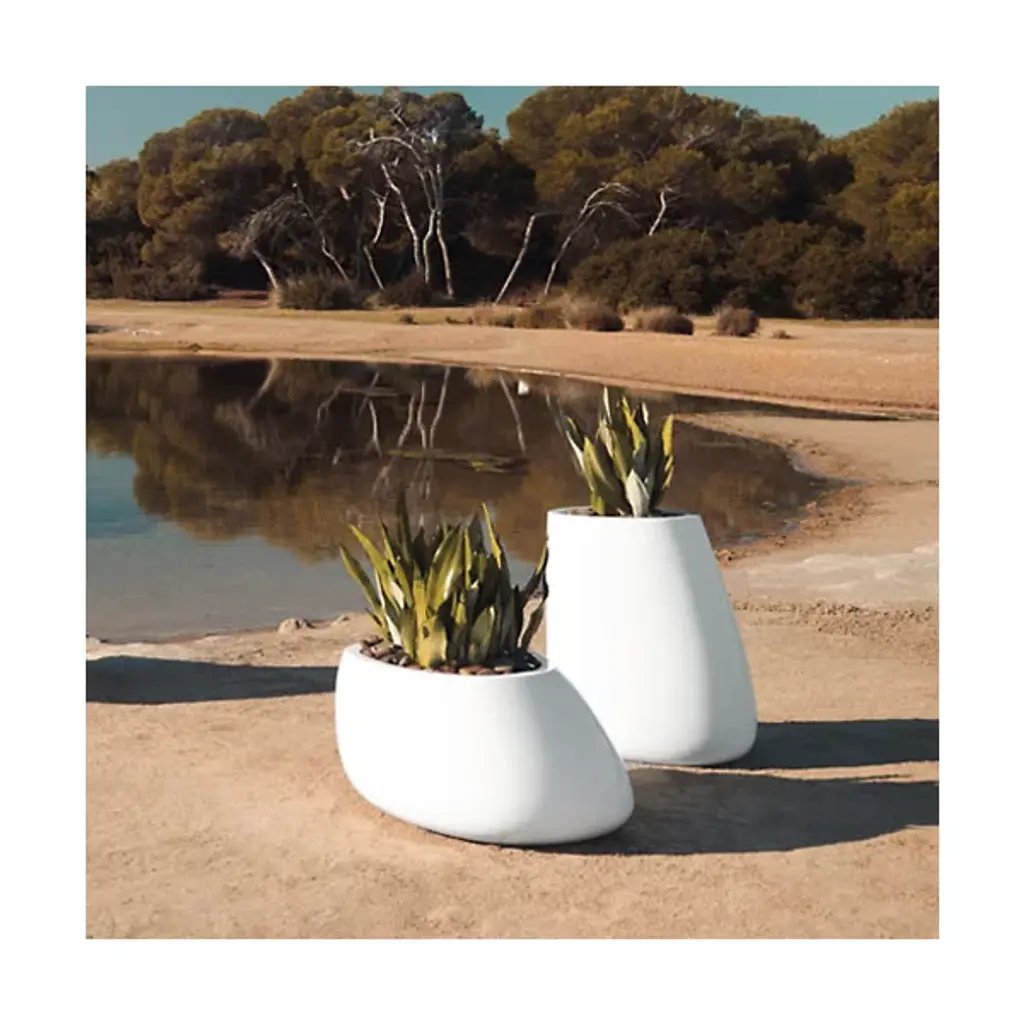 2014 Design by Stefano Giovannoni. Made in Spain by VONDOM. Vondom's Stone Planters come in varying shapes and sizes, but all hold organic postures, allowing a natural feel for the plant it holds. Perfect for large bonzai or other aged greenery, the stone series will bring a weather-sculpted feel to your modern home. Made from 100% recyclable polyethylene, this planter is lightweight, impact-resistant, and weather-resistant.