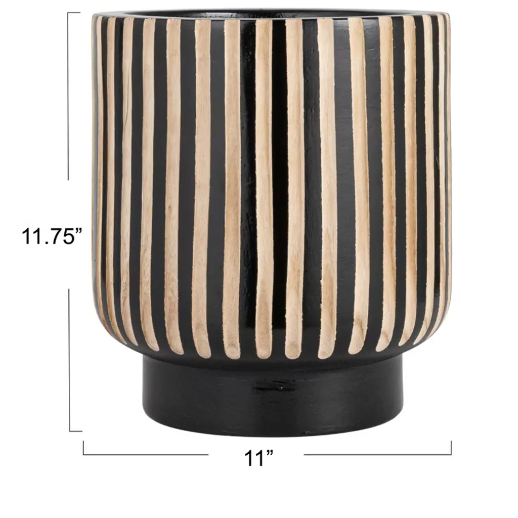 Storied Home Hand-carved Wood Planter With Stripes, Black Finish