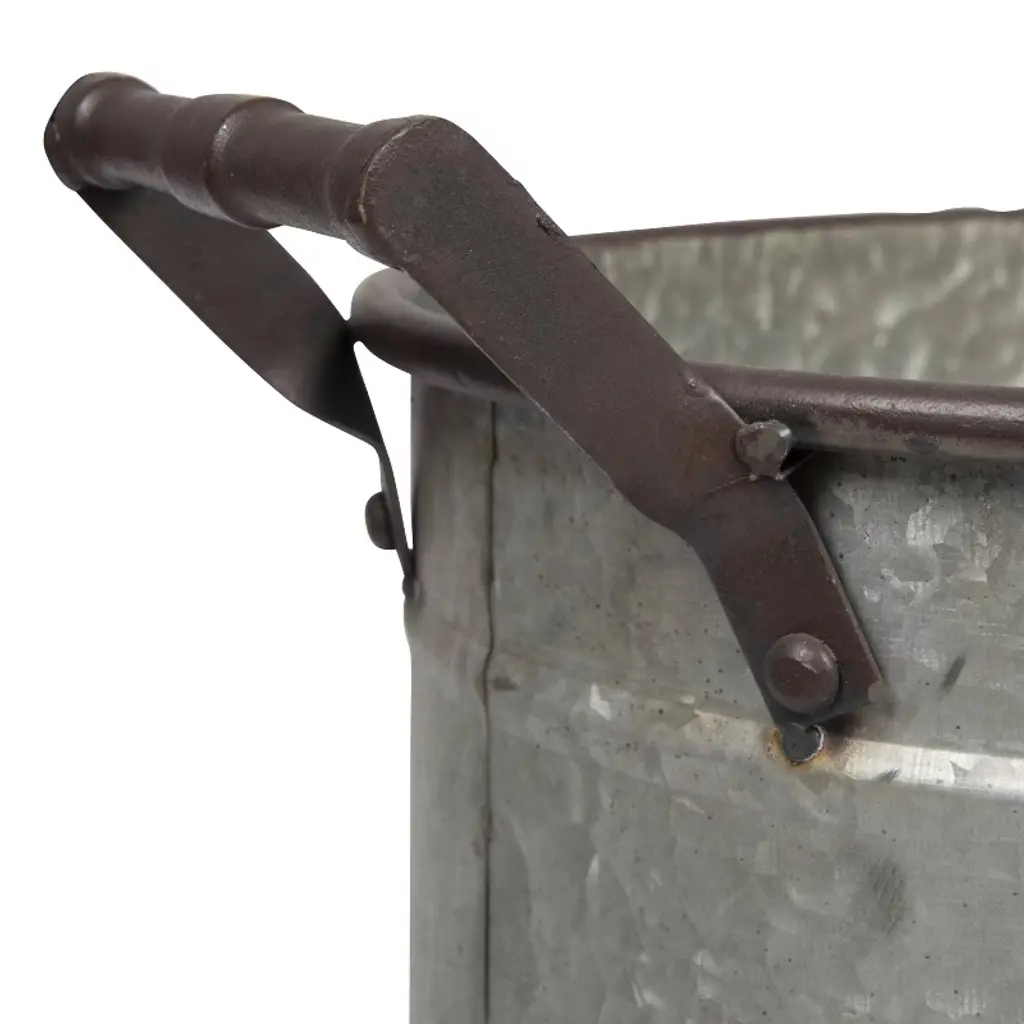 Storied Home Metal Buckets With Handles On Stand - Set Of 3 : No Drainage, Rustic Silver Planters