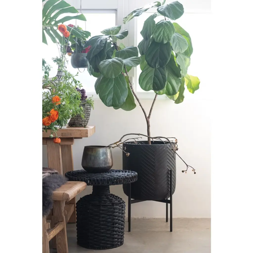 Storied Home Round Metal Planter With Chevron Pattern On Stand, Black