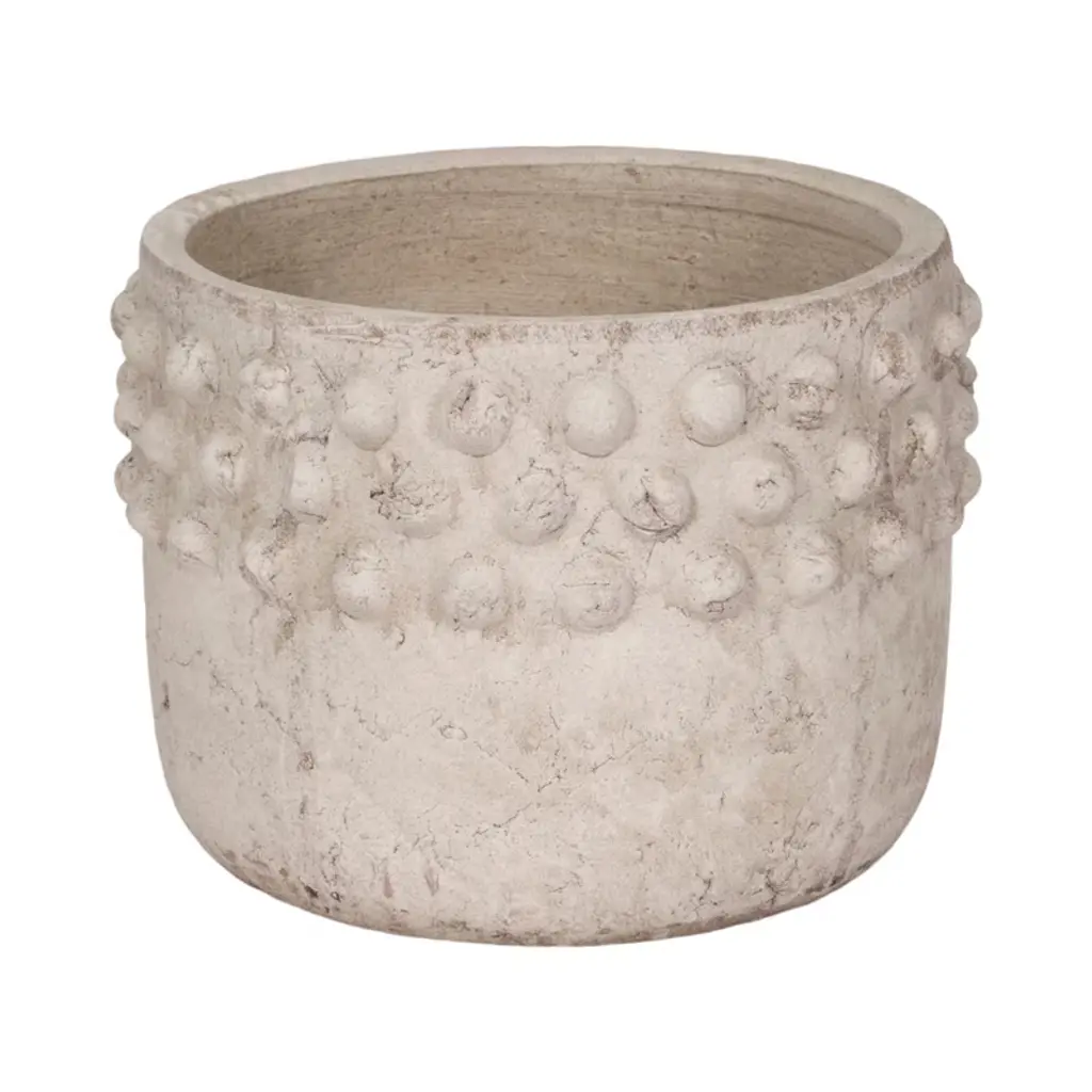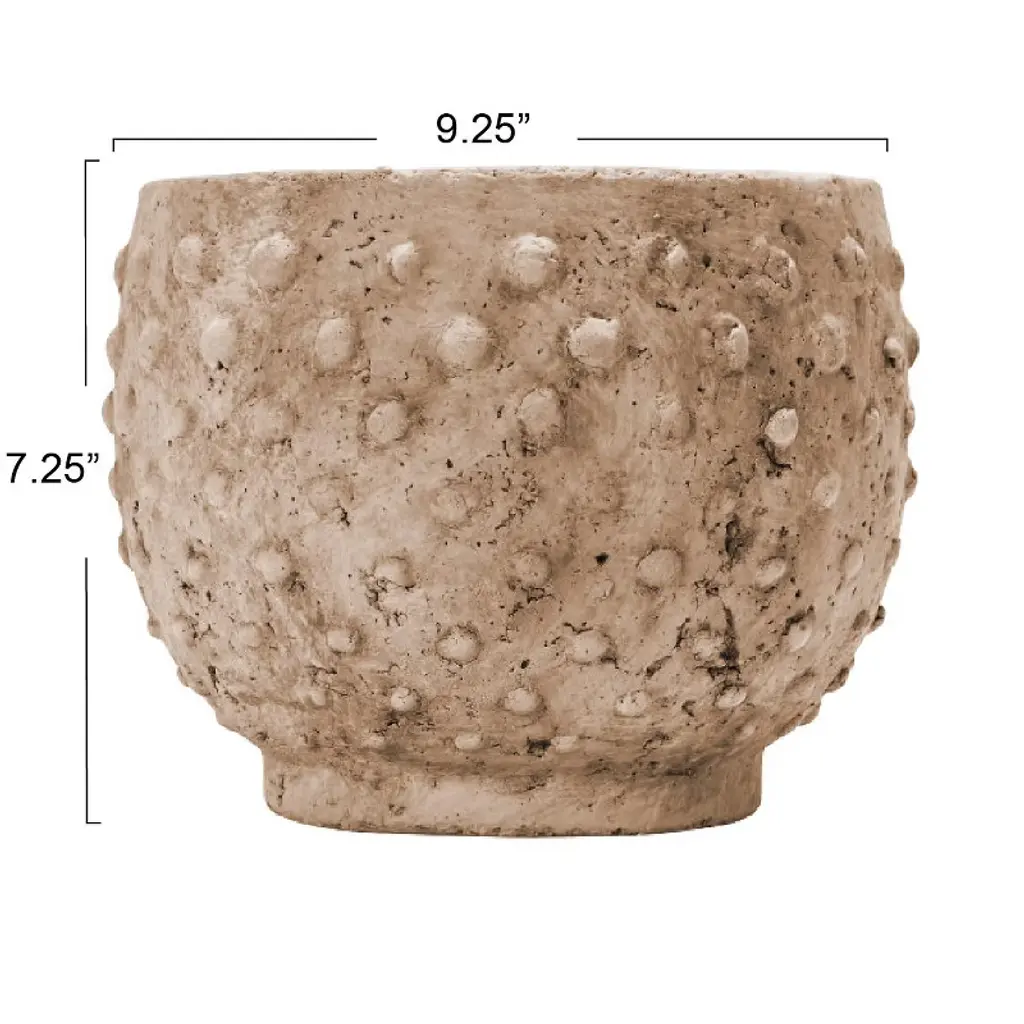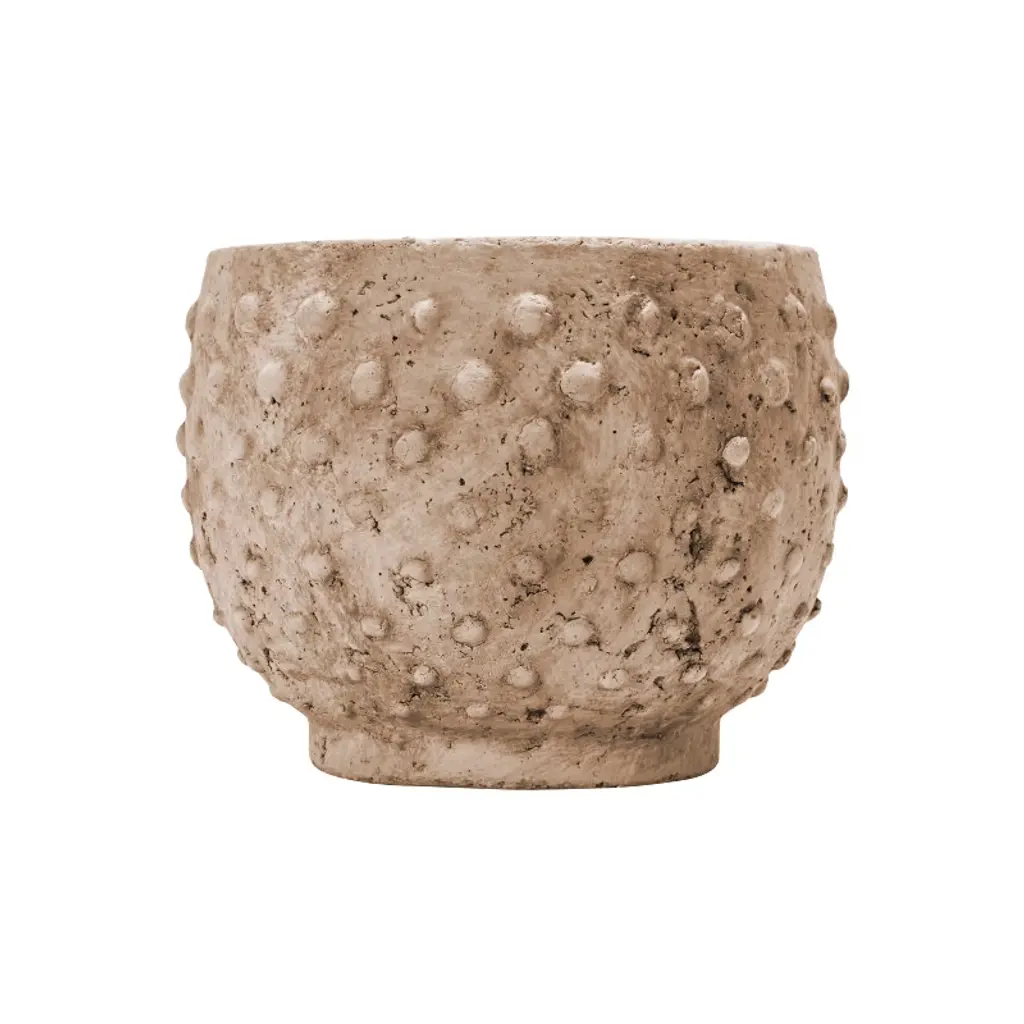 Storied Home Round Sandstone Hobnail Planter With Distressed Finish, Greige
