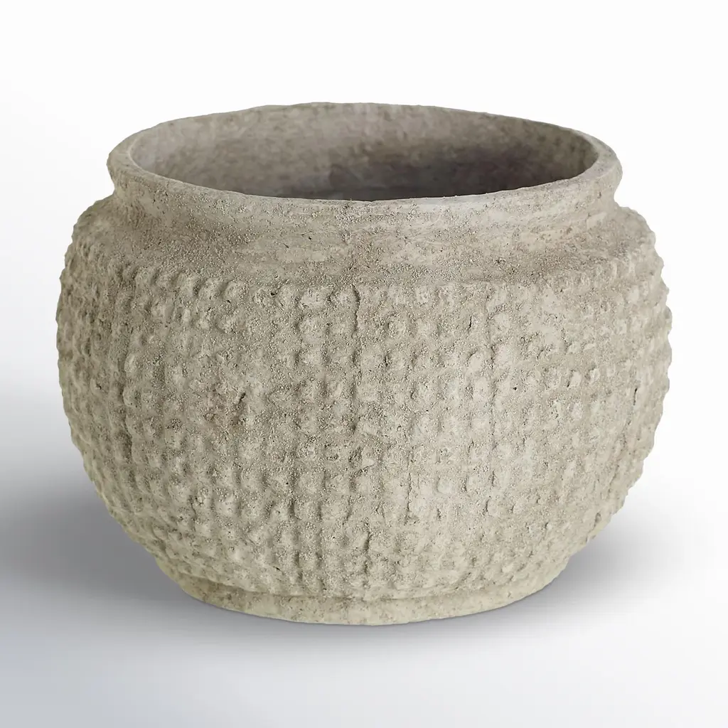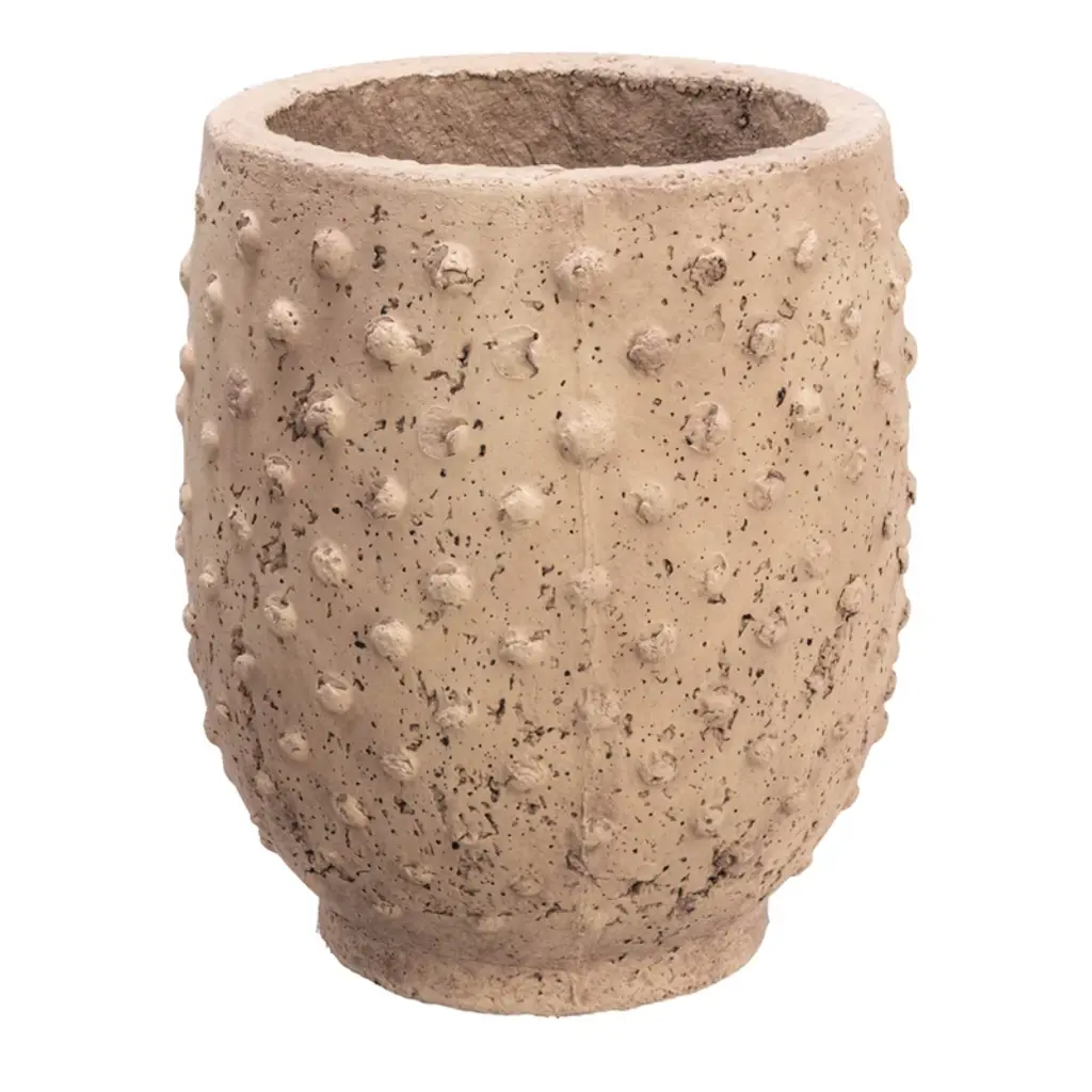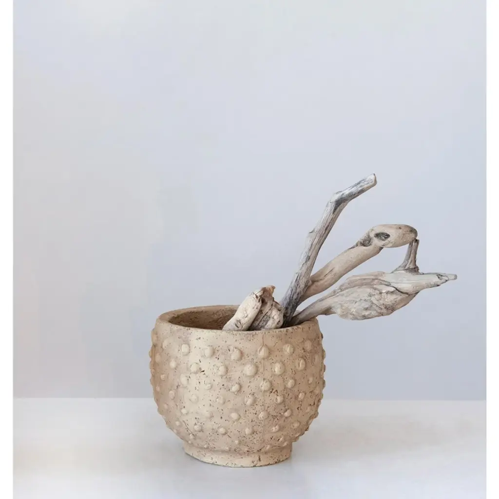 Storied Home Round Sandstone Hobnail Planter With Distressed Finish, Greige