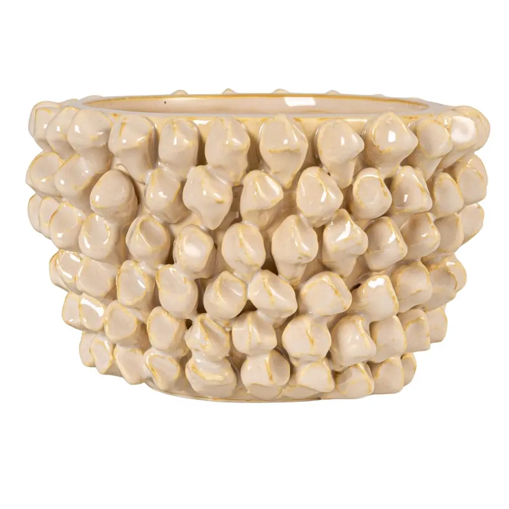 Storied Home Stoneware 3D Spiked Formed Planter, Cream